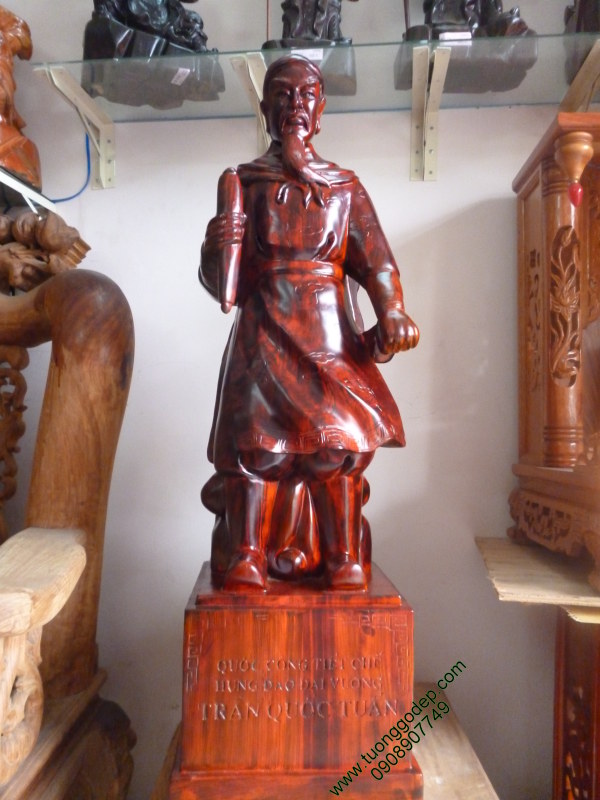 Tượng gỗ Trần Hưng Đạo (Gỗ muồng, sơn giống cẩm, Cao 1m)