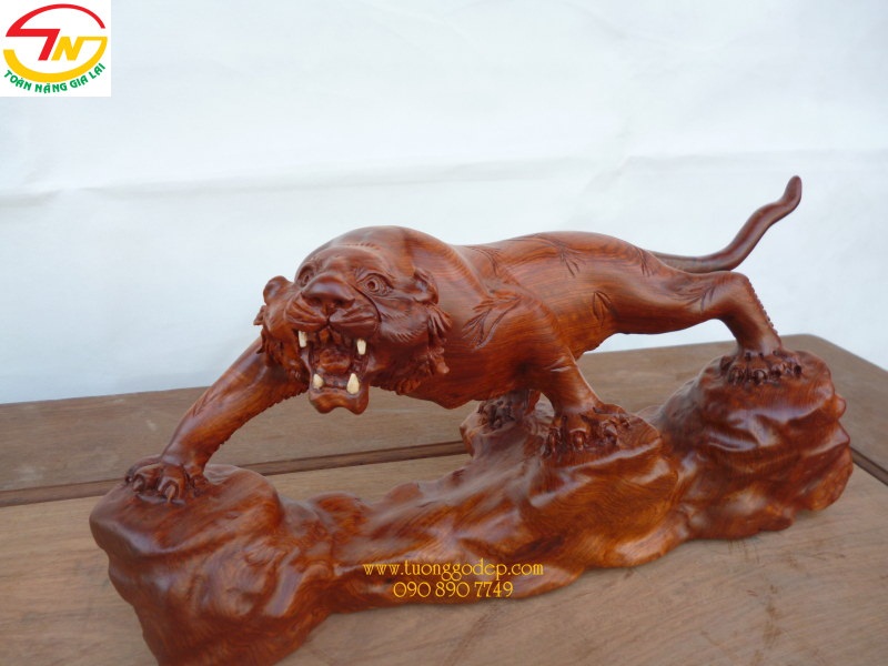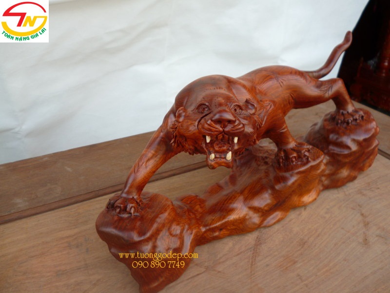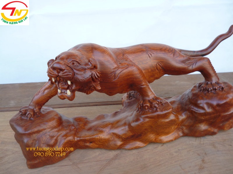 Tượng Cọp (Hổ) bằng gỗ hương, cao 18cm, dài 40cm