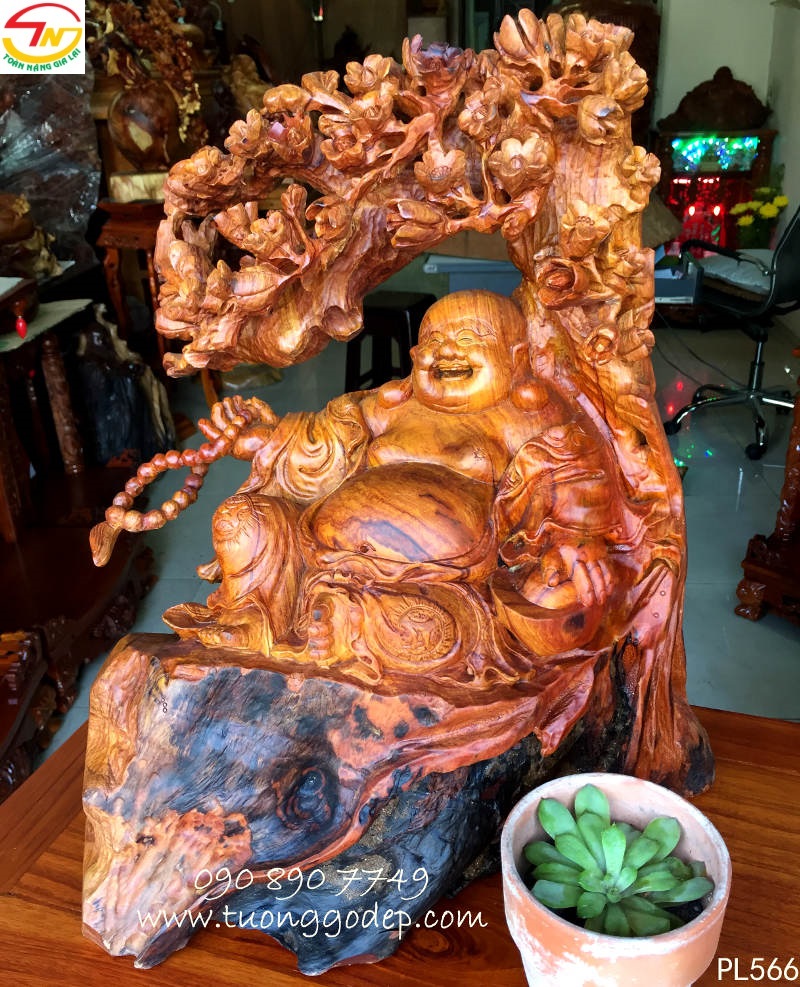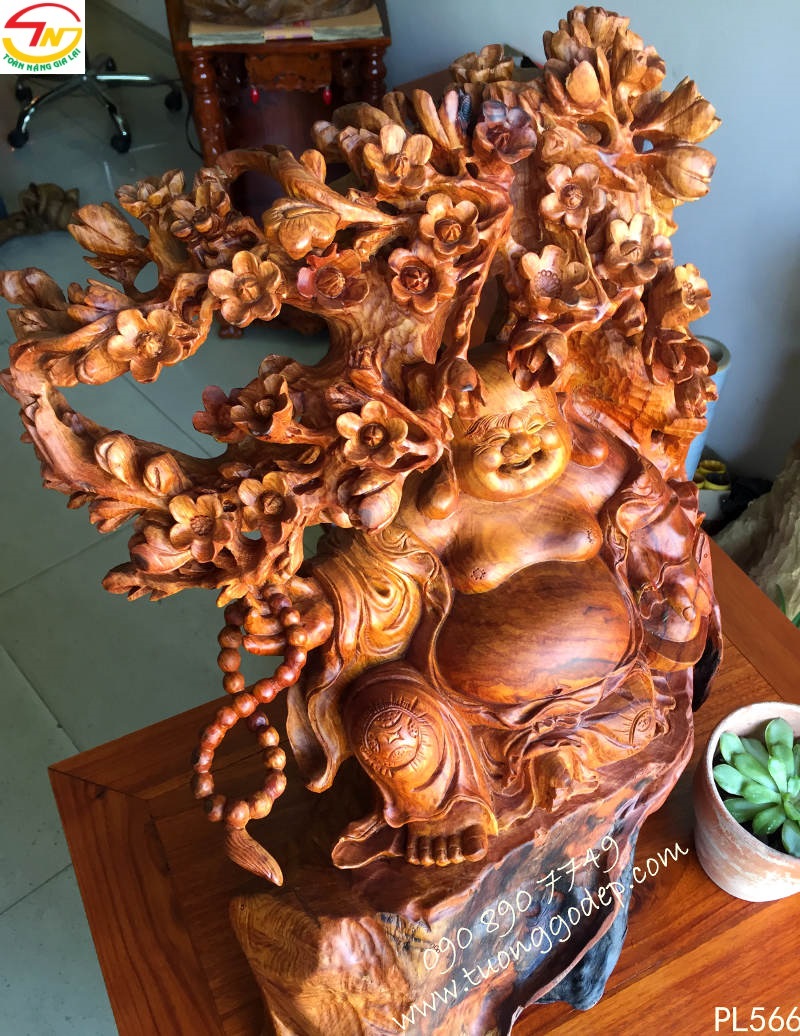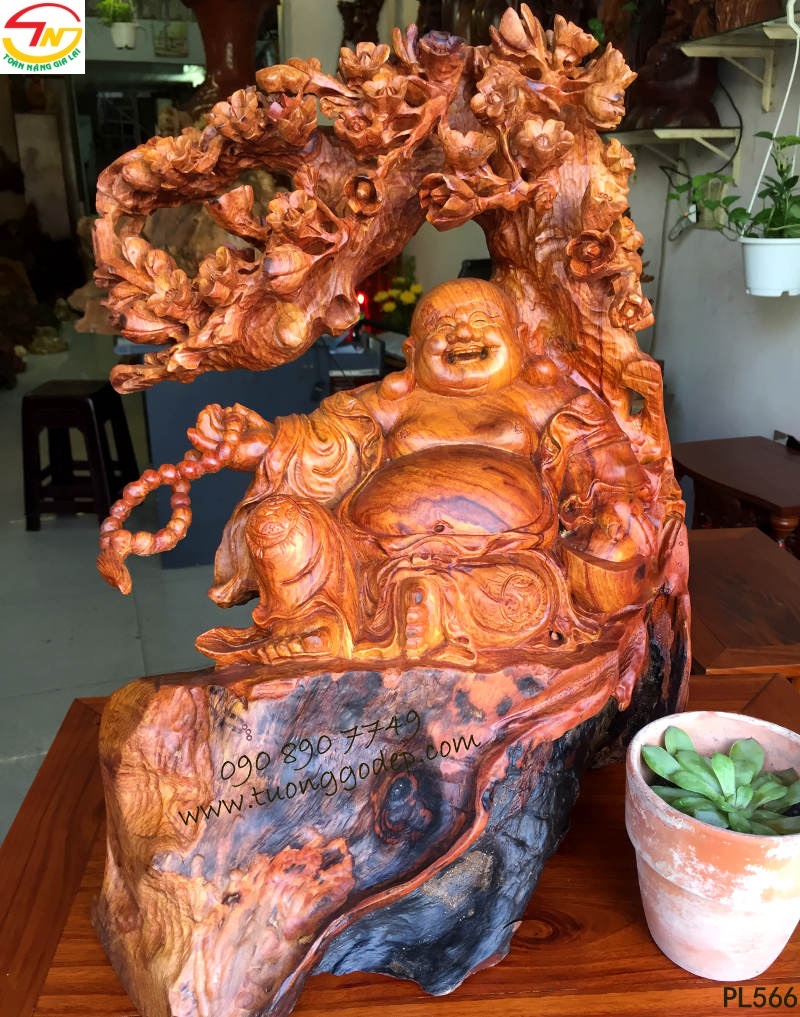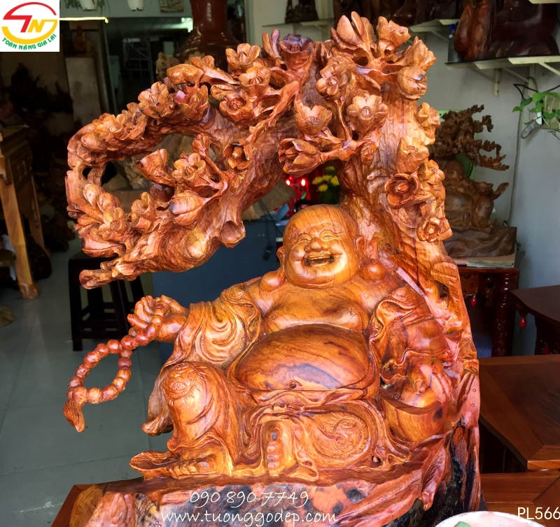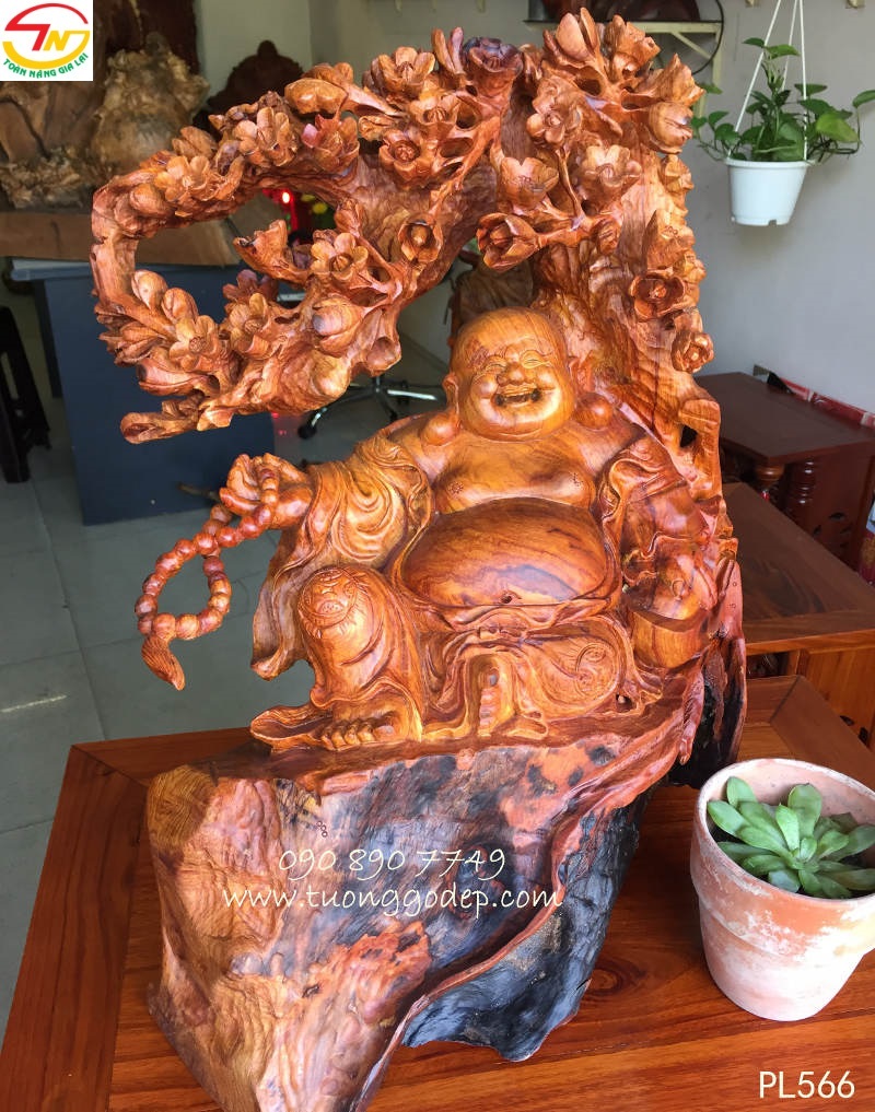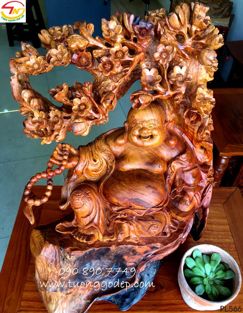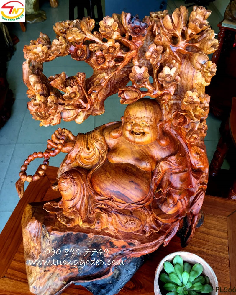 Phật Di Lặc gỗ cẩm đục bách mai mang ý nghĩa ngũ phúc.