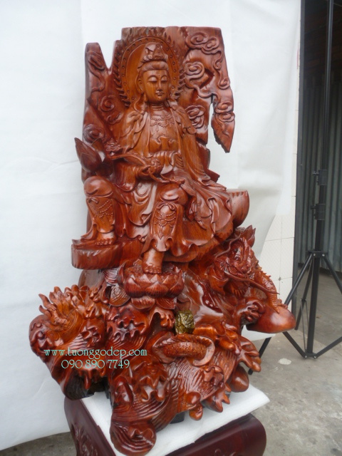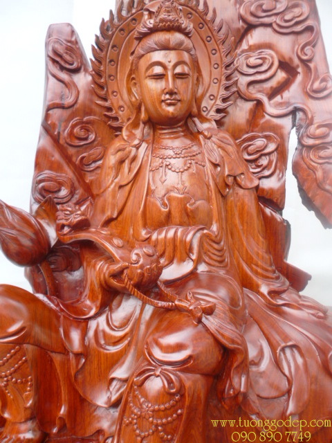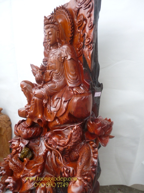 Tượng Phật Quan Âm (Gỗ hương, cao 98cm, ngang 68cm)