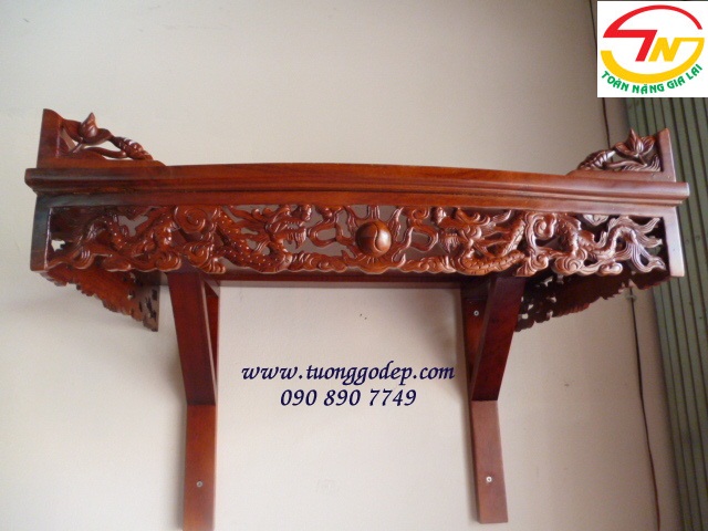 Bàn thờ Phật, Bàn thờ Gia tiên - Chạm Rồng & Phụng (Gỗ căm xe ngang 68cm x 42cm)