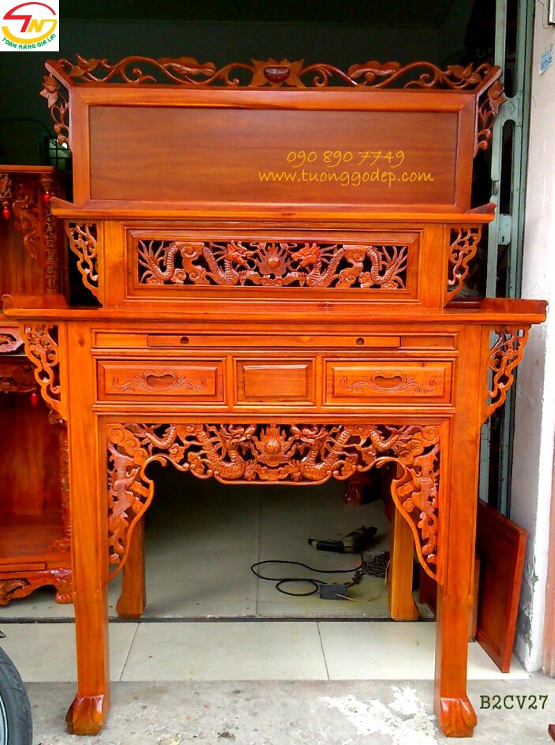 Bàn thờ nhị cấp có vách. Gỗ căm xe, ngang 1.27m x cao 1.82m x sâu 78cm