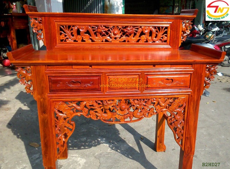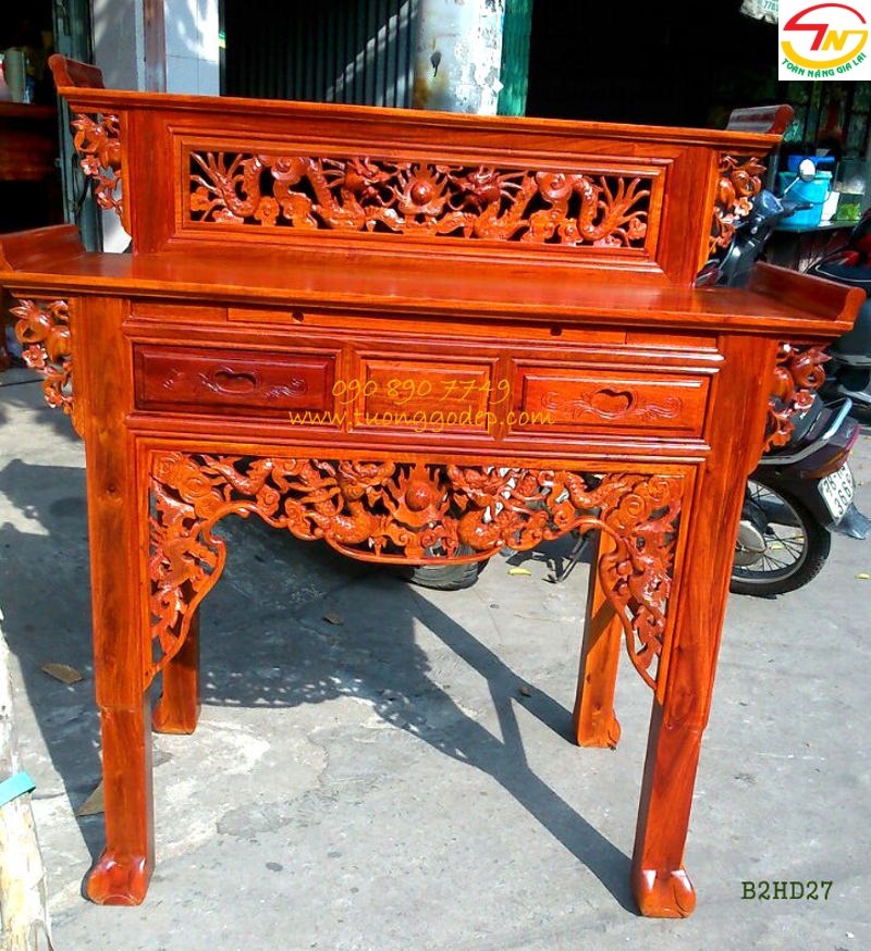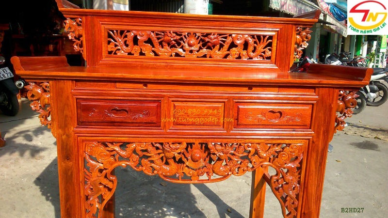 Bàn thờ Phật và Gia tiên - Bàn thờ nhị cấp gỗ hương, ngang 1.27m x cao 1.34m x sâu 78cm