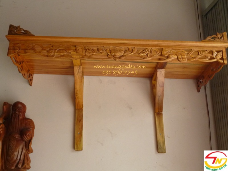 Bàn thờ treo tường - Chạm Sen (Gỗ Xoan đào, ngang 108cm x 48cm)