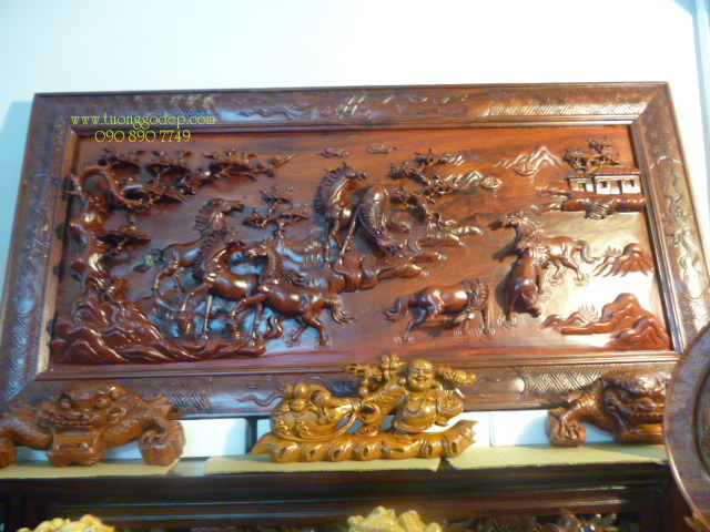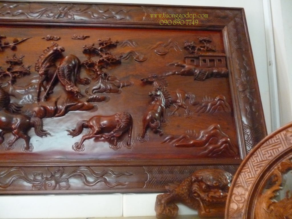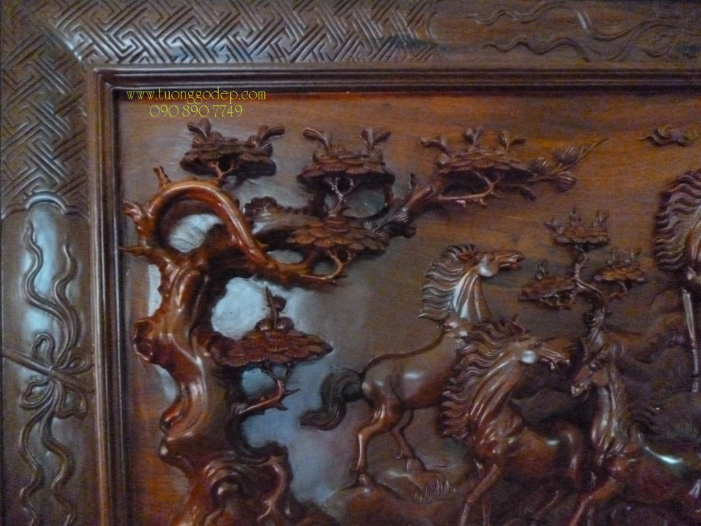 Tranh Bát Mã Du Xuân (Gỗ gõ hương cao 0.7m rộng 1.4m)