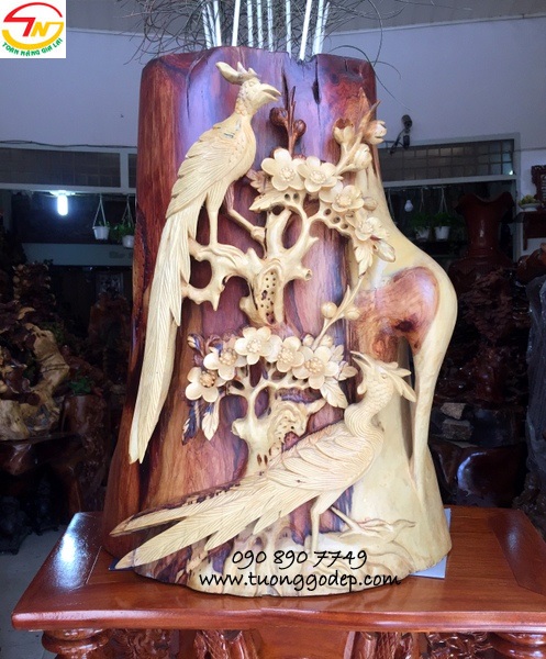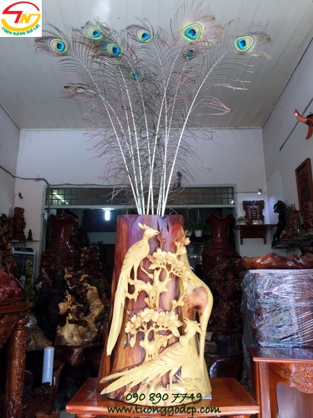Bình gỗ Mai điểu có thể dùng cắm hoa, hoặc lông chim công...