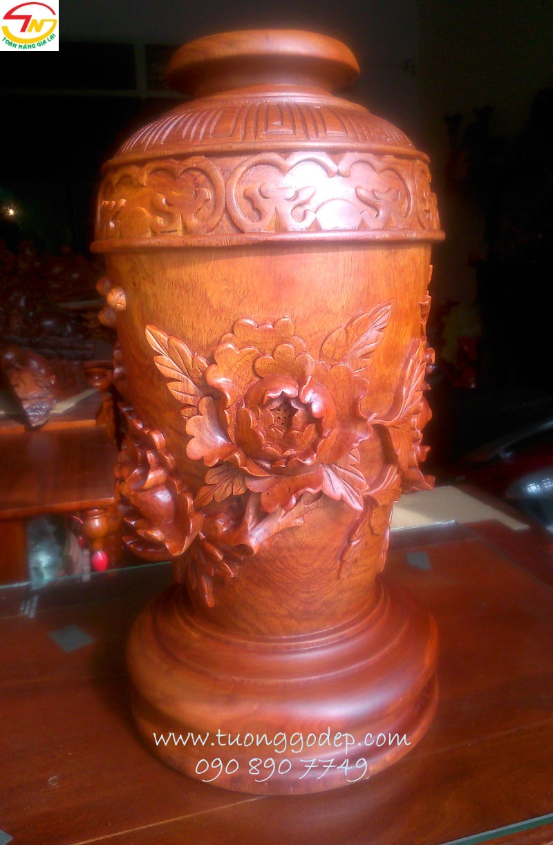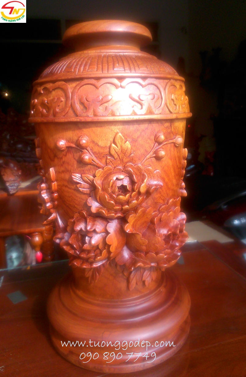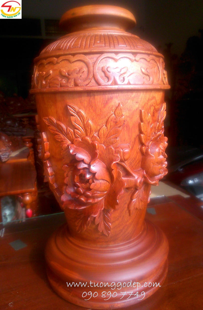 Bình hoa chạm hoa phù dung - Gỗ hương, cao 40cm