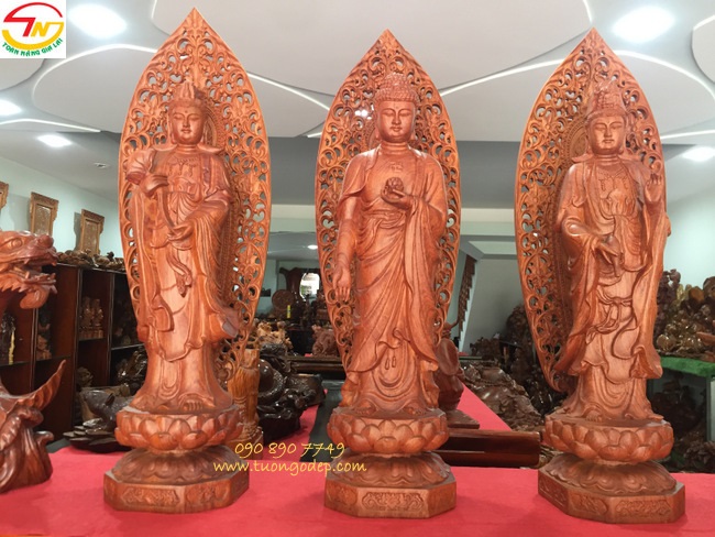 Tây Phương Tam Thánh gồm ba Đức Phật tượng trưng cho các đức hạnh tốt đẹp mà chúng ta luôn hướng tới. Ở vị trí trung tâm là Đức Phật A Di Đầ- là vị Phật được tôn thờ nhiều nhất trong Phật giáo Đại Thừa.Tên của Ngài nghĩa là Vô Lượng Thọ- nghĩa là thọ mệnh vô lượng và Vô Lượng Quang - ánh sáng vô lượng.