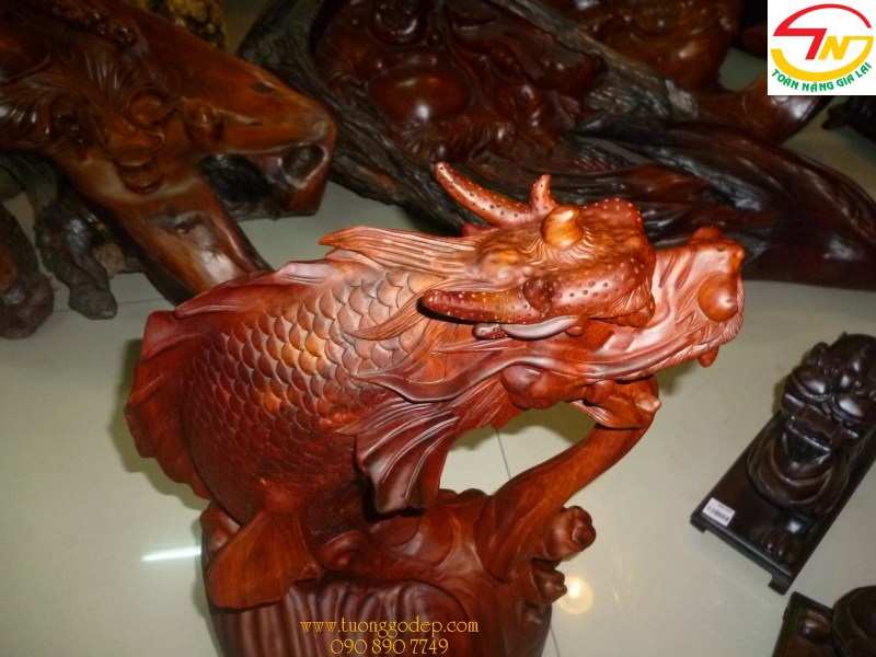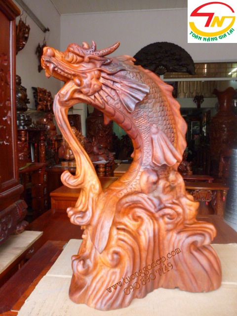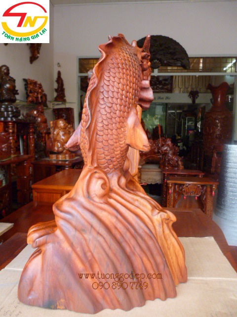Cá Chép Hóa Rồng (Gỗ hương, cao 50cm x rộng 30cm)
