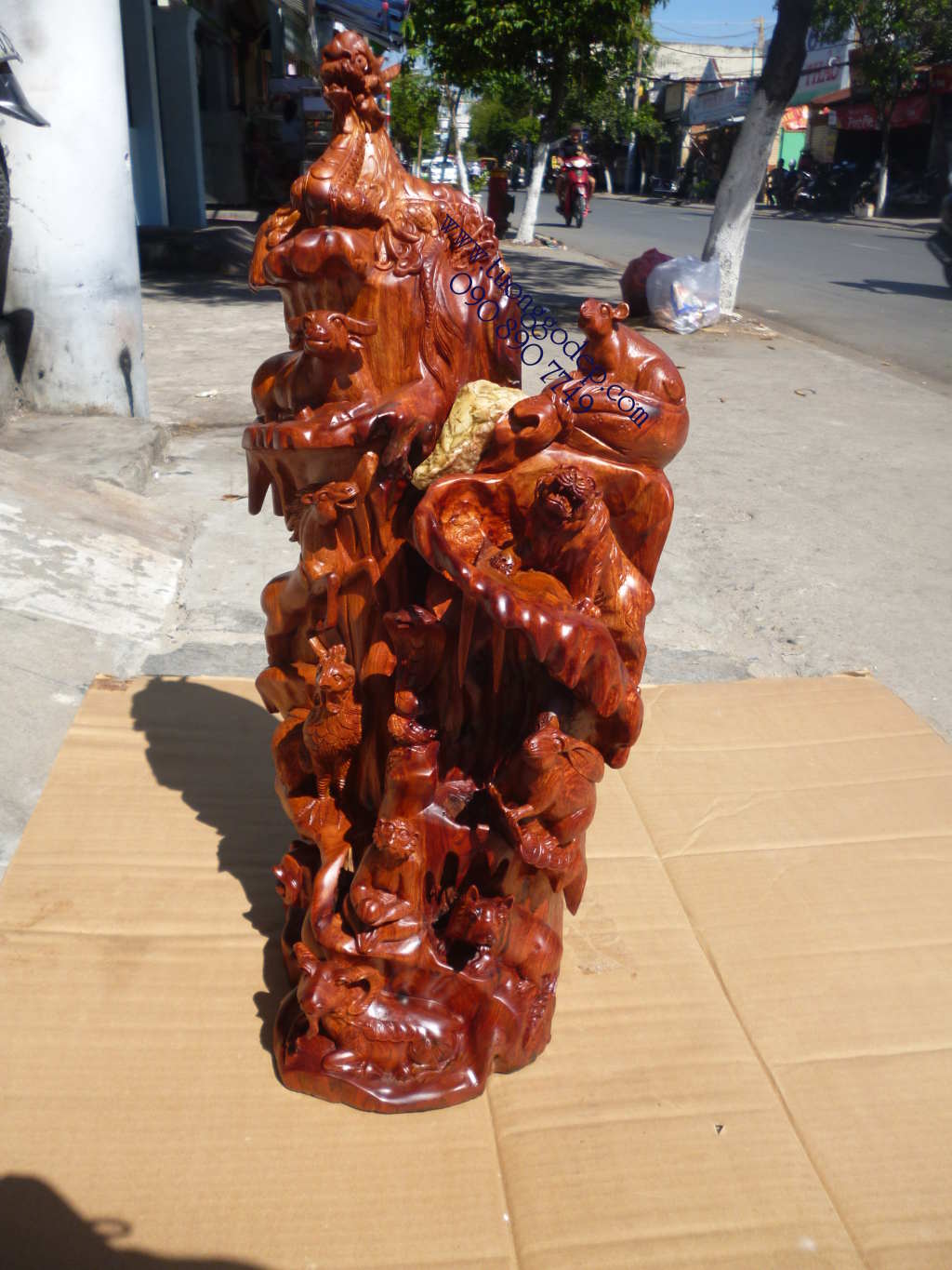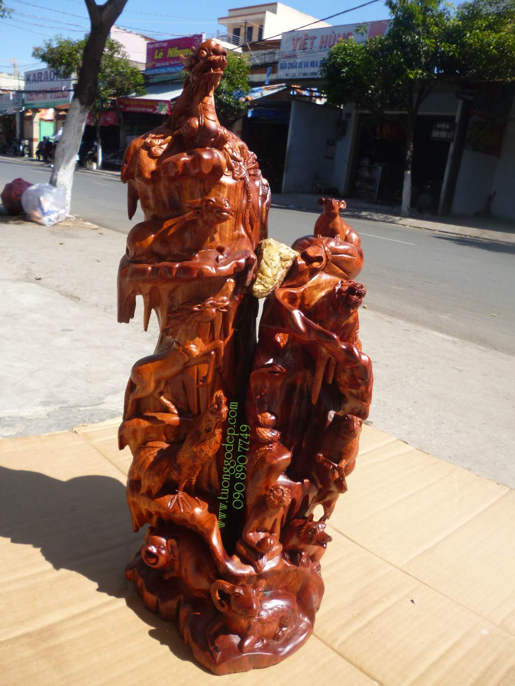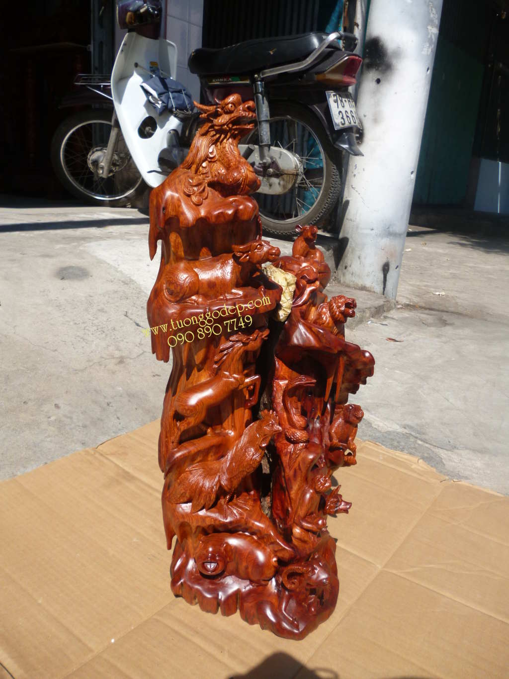 Cây 12 Con giáp bằng gỗ hương (cao 60cm x rộng 23cm). Nhận tạc con giáp theo thứ tự trong nhà ba, mẹ, con...