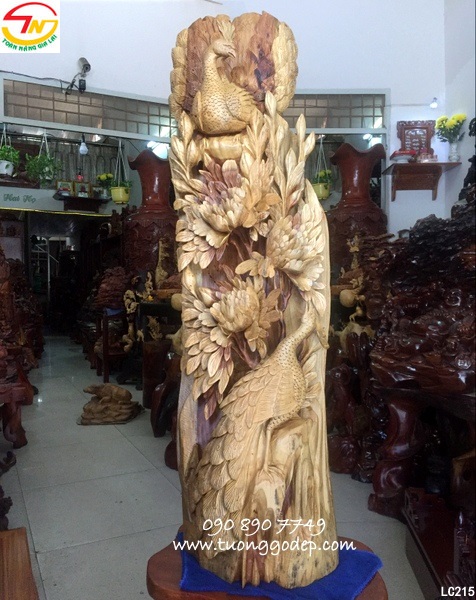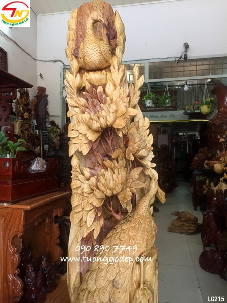 Chim Phượng hoàng được tạc cùng hoa phù dung. Nét đục rất kênh bông