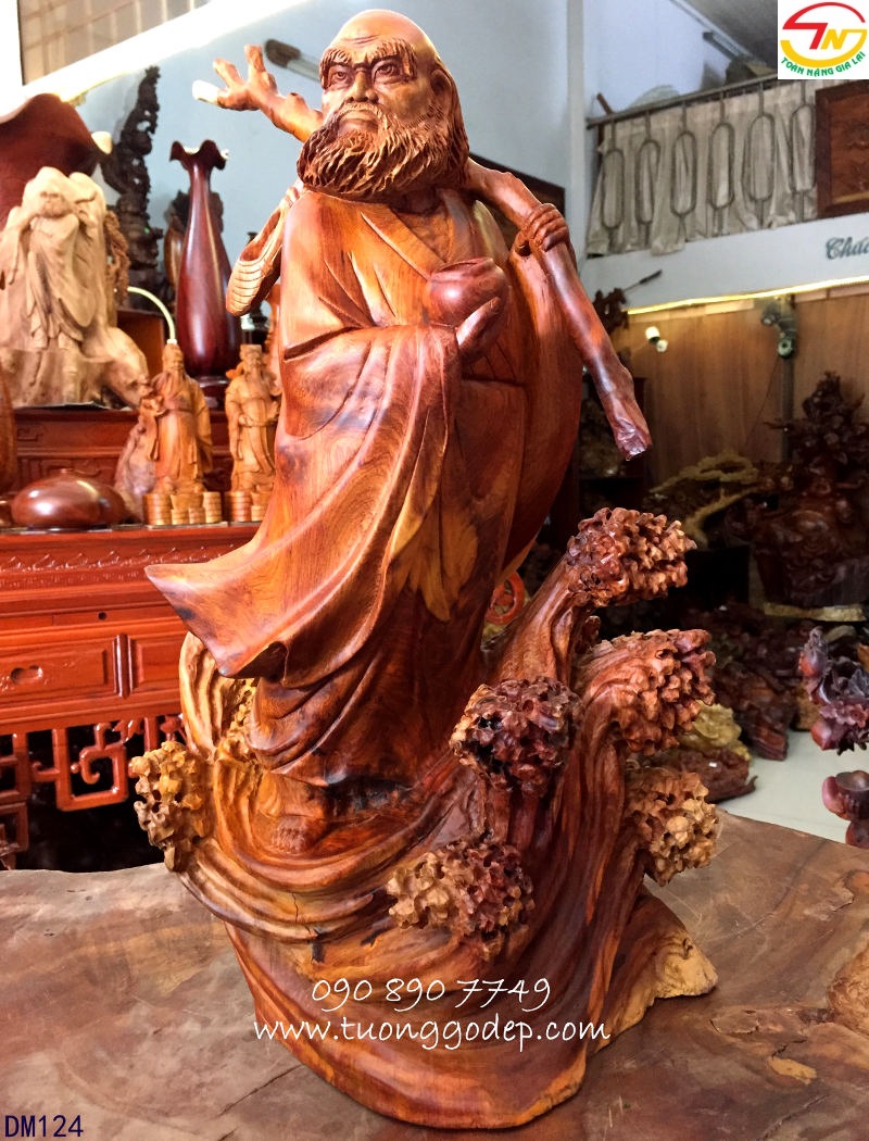 Đạt Ma Quá Hải - Gỗ hương, cao 53cm x rộng 35cm