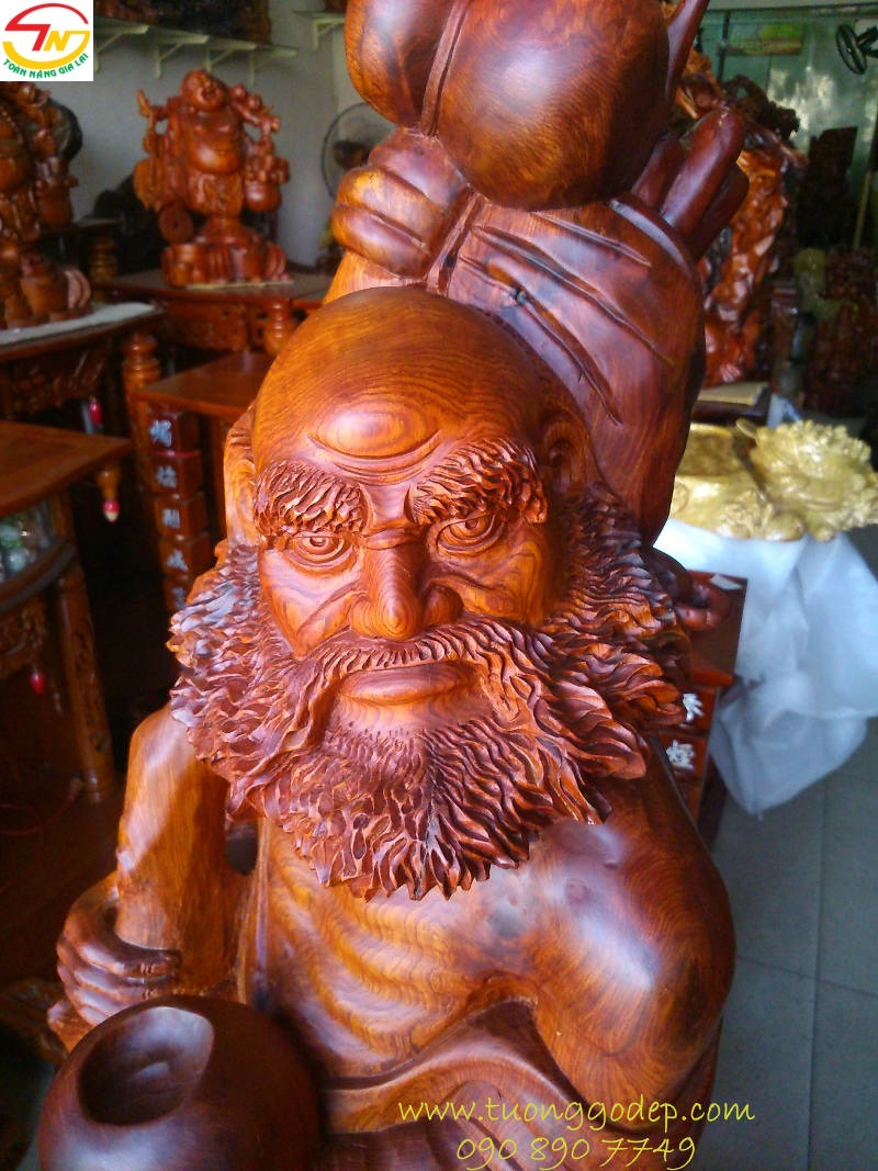 Gỗ hương, màu rất sáng, vân gỗ cuồn cuộn, Tượng được bắt vân chuẩn nằm đúng vị trí