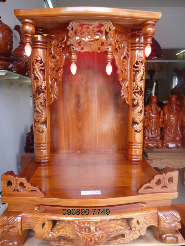 Bàn thờ Thần Tài - Ông Địa Gỗ Căm xe- Rộng 48cm x Cao 68cm