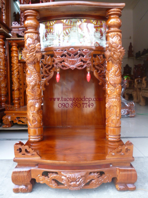 Bàn thờ Ông Địa, Thần Tài, Gỗ Căm Xe - Cao 98cm x Rộng 60cm
