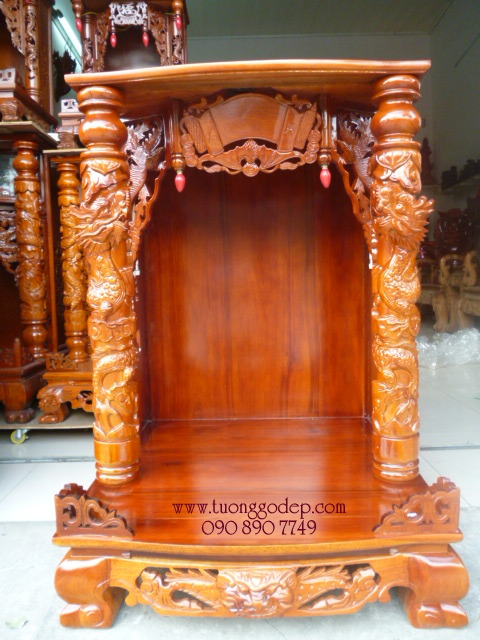 Bàn thờ Thần Tài - Ông Địa. Gỗ Lim, chạm rồng nổi - Rộng 60cm x Cao 98cm