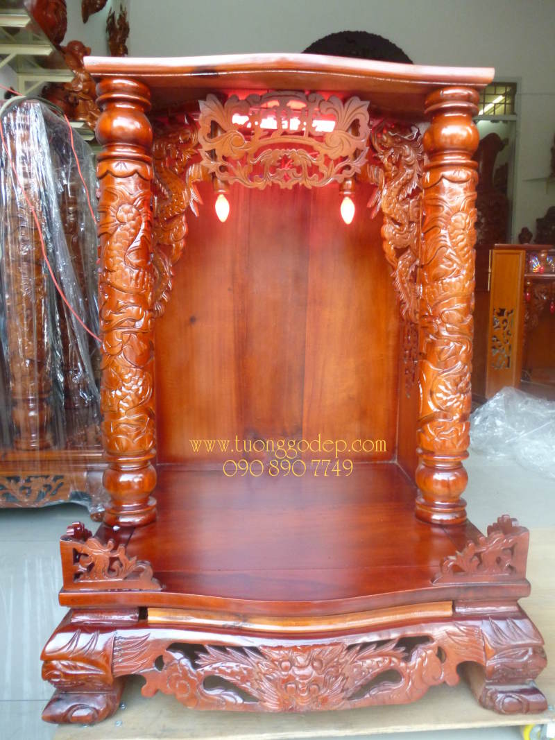 Bàn thờ Thần Tài - Ông Địa, Gỗ Tràm - Rộng 60cm x Cao 88cm, không có hộp đèn