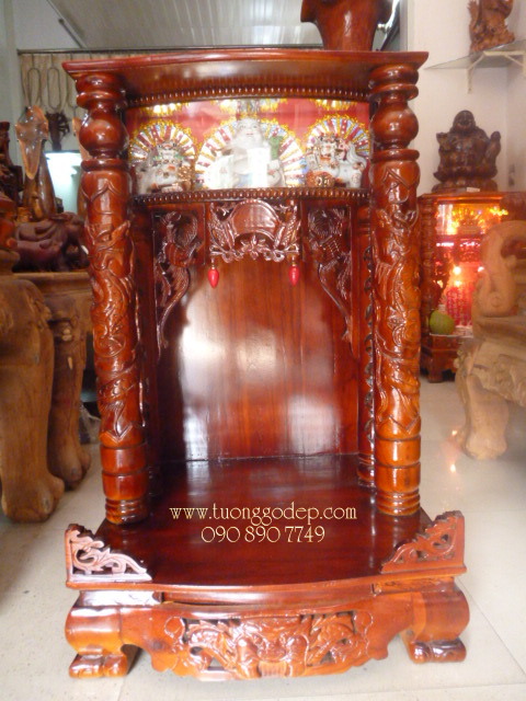 Bàn thờ Ông Địa, Thần Tài - Gỗ Xoan Đào - Rộng 60cm x Cao 98cm - Có hộp đèn điện tử