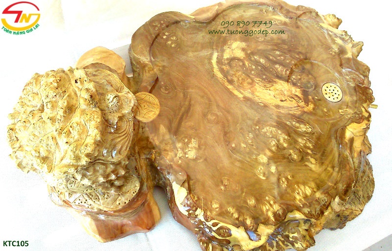 Khay trà bằng gỗ nu nghiến kết hợp với thiềm thừ