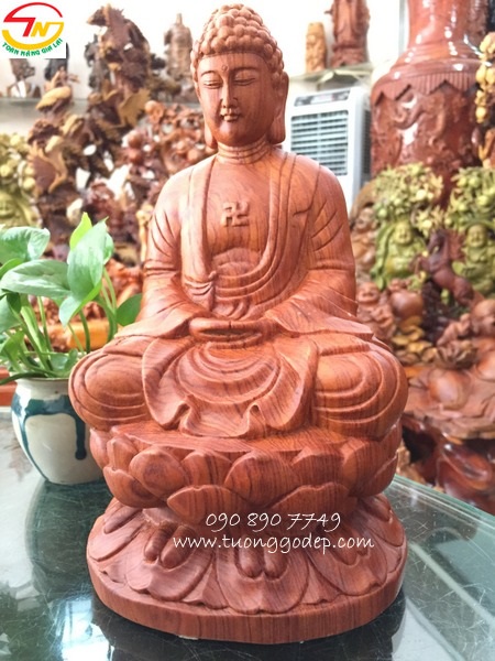 Đức Phật A Di Đà thường thờ có hai tượng: Tượng ngồi kiết già trên tòa sen, tay kiết định ấn, tương tự tượng Thích Ca. Tượng đứng trên hoa sen lơ lửng trong hư không, bên dưới là bể cả sóng dậy chập chồng, mắt Ngài nhìn xuống, tay mặt đưa lên ngang vai, tay trái duỗi xuống như sẵn sàng chờ đợi tiếp cứu những người đang trầm mịch. Tượng ấy gọi là tượng Di Đà phóng quang.