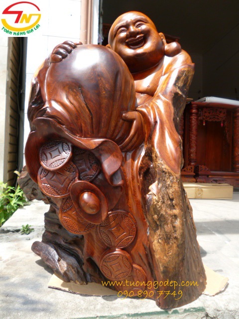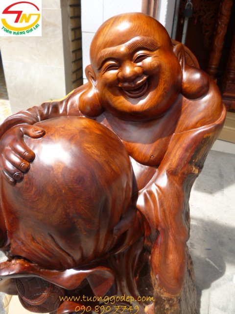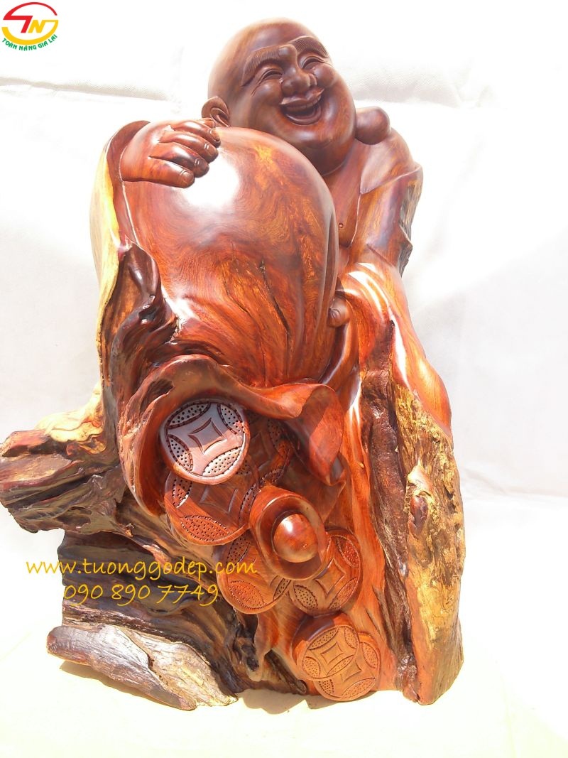 Tượng Phật Di Lặc ban tài (Gỗ hương, Cao 76cm x ngang 56cm x sâu 48cm)