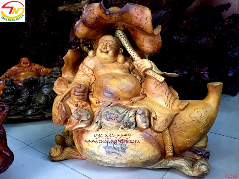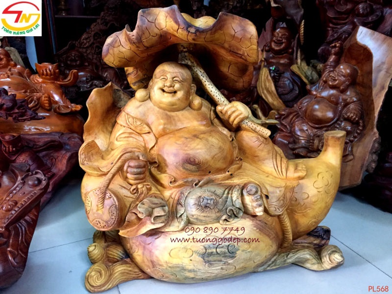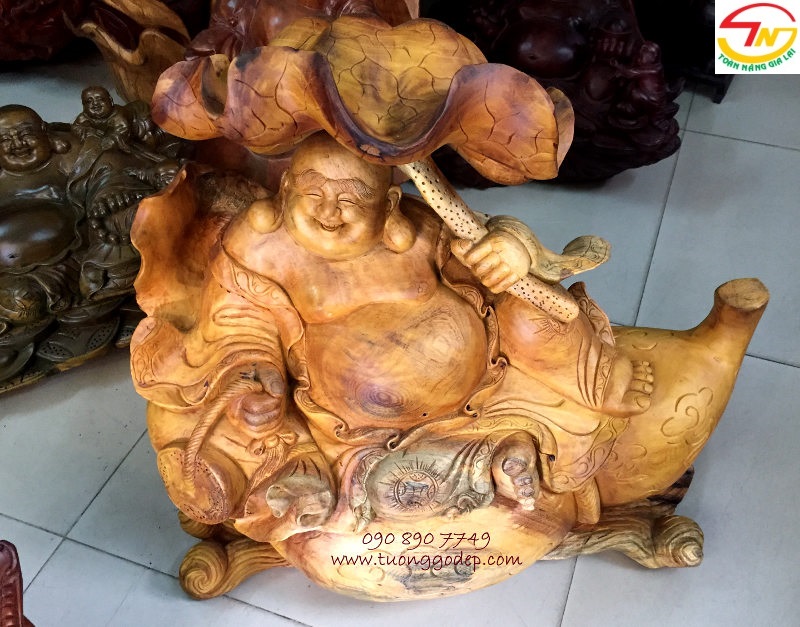 Phật Di Lặc tay cầm lá sen và dây tiền...