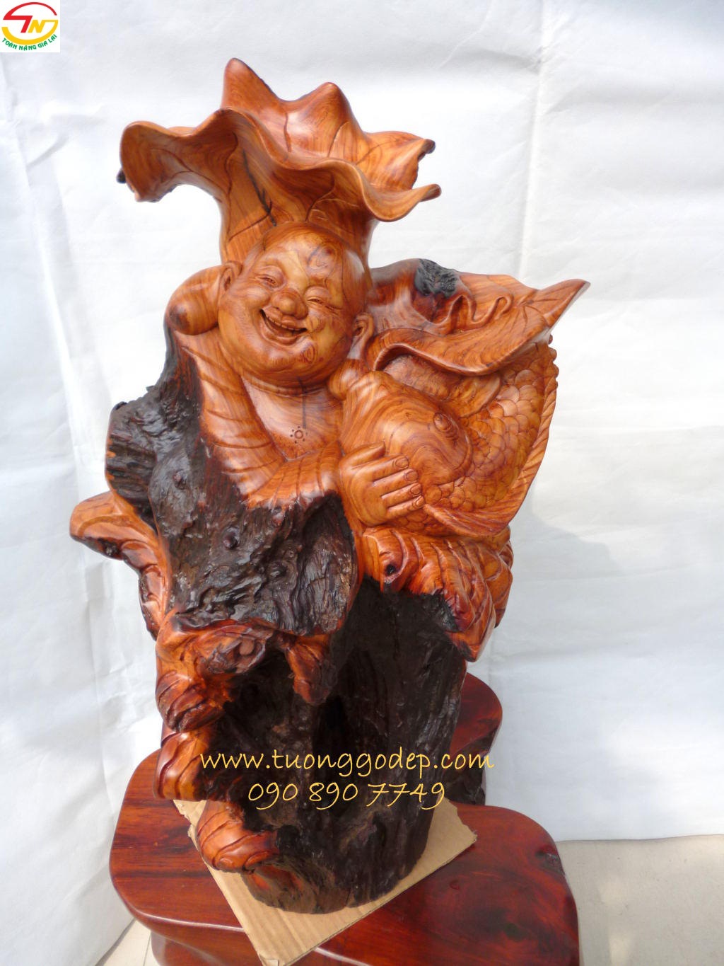 Tượng Phật Di Lặc (gỗ cà te hay còn gọi gõ đỏ. Cao 76cm x ngang 38cm)