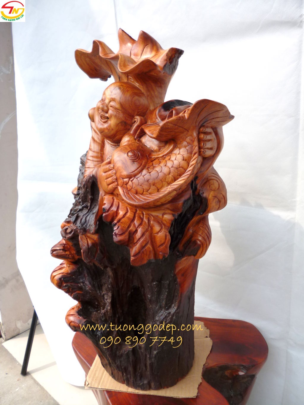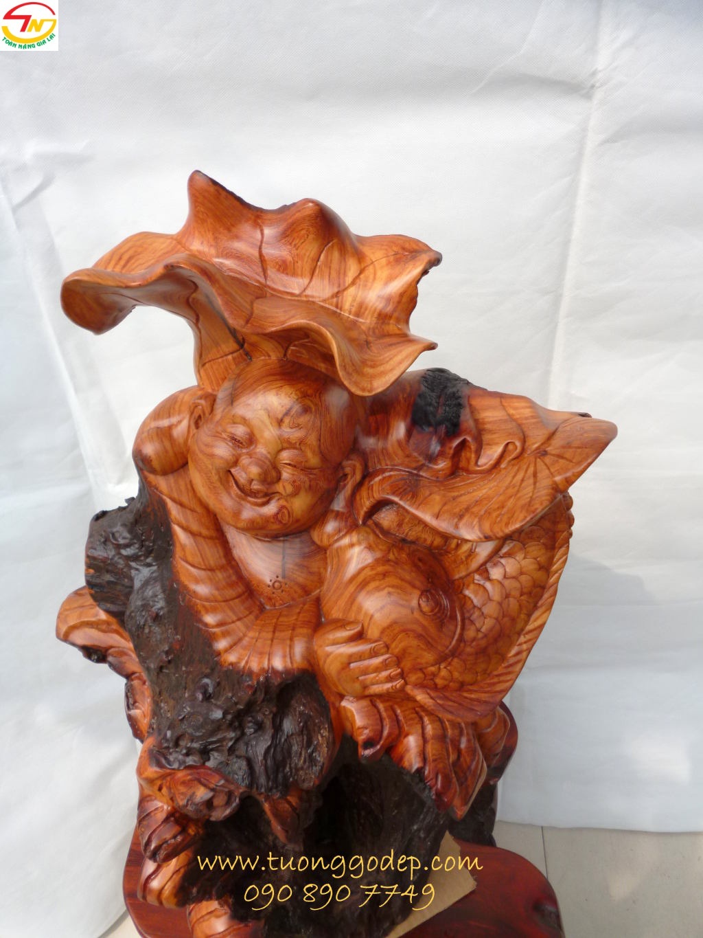 Tượng kết hợp với sen & cá, nhìn nét mặt ngài rất hoan hỷ