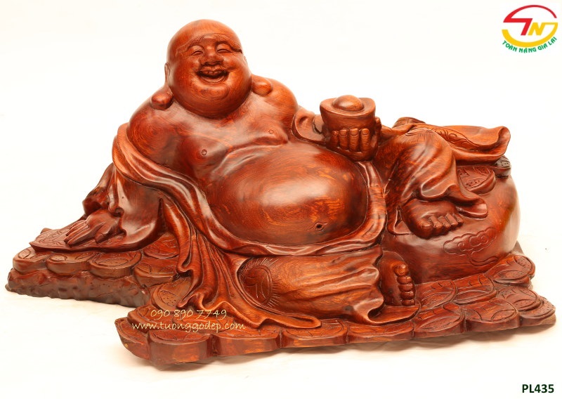 Tượng Phật Di Lặc gỗ hương (Dài 58cm x rộng 44 x cao 28cm)