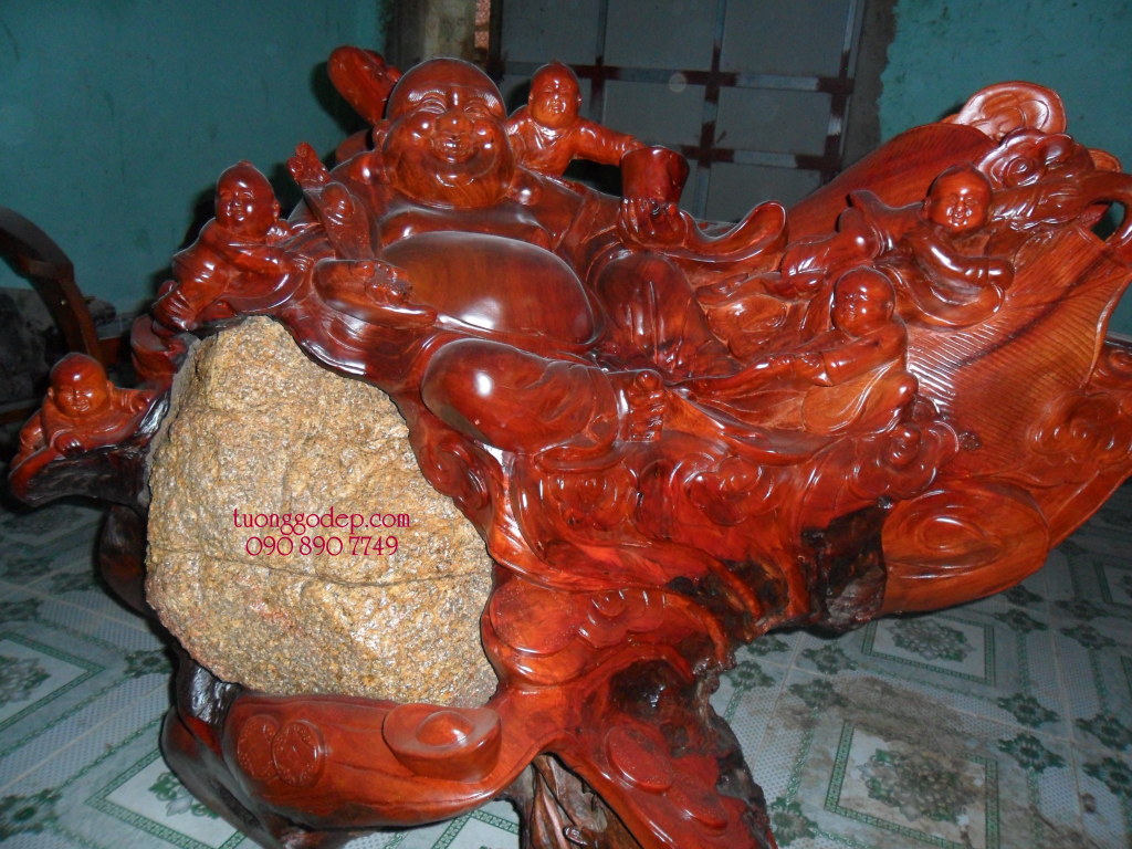 Phật Di Lặc cưỡi mây (Gốc gỗ hương ôm đá) - Sản phẩm độc nhất vô nhị