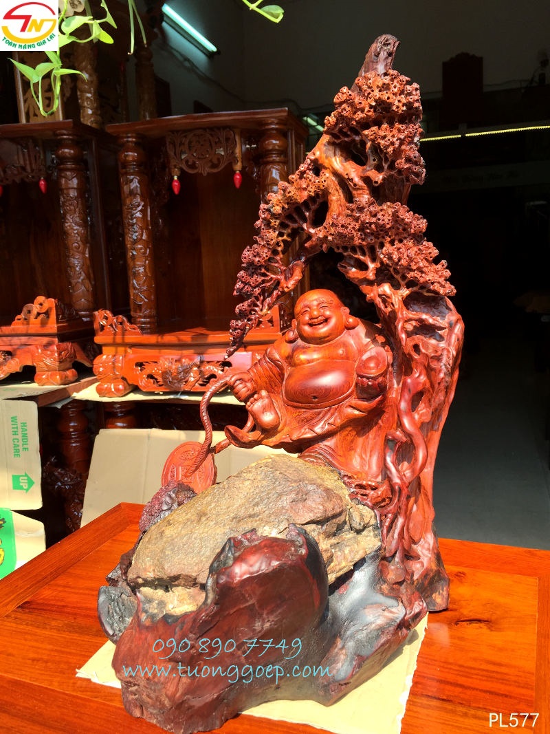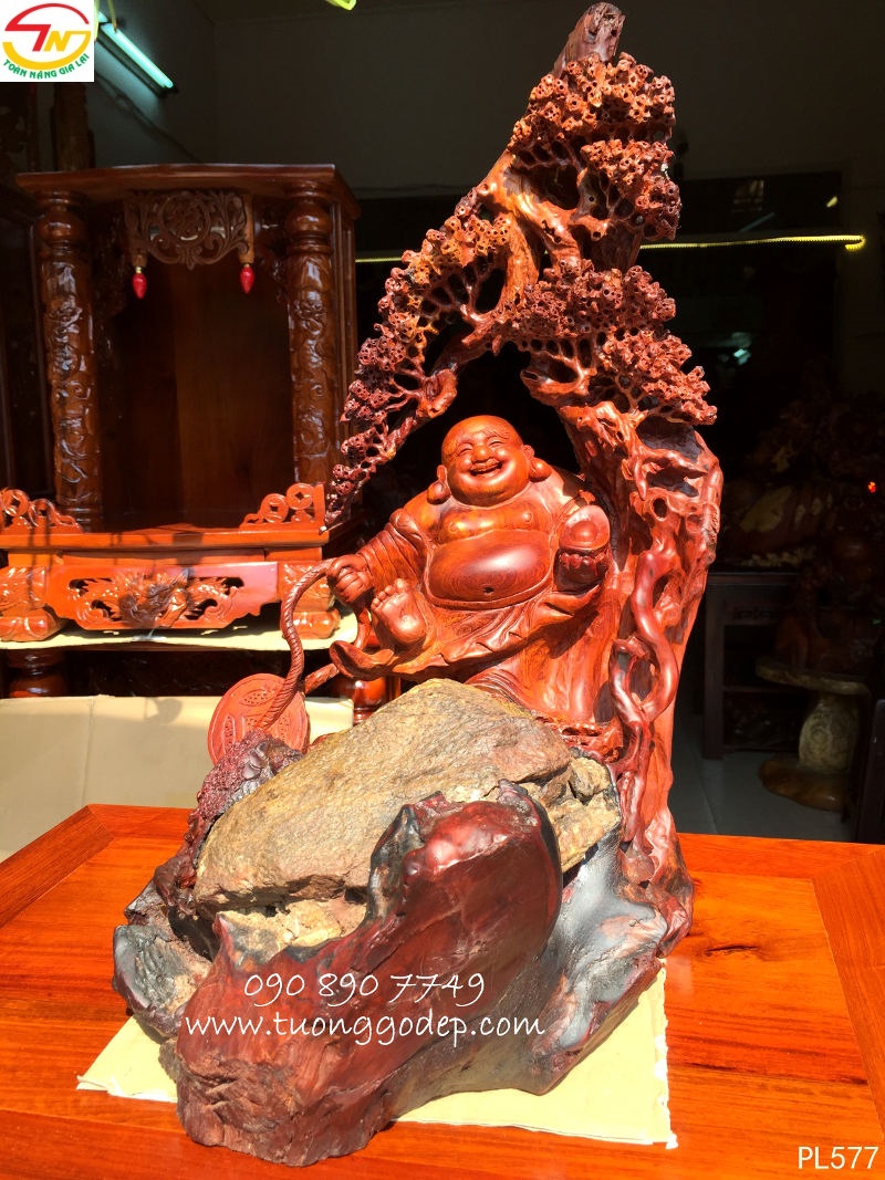 Phật Di Lặc gỗ hương ôm đá sản phẩm có 102 (một không hai)