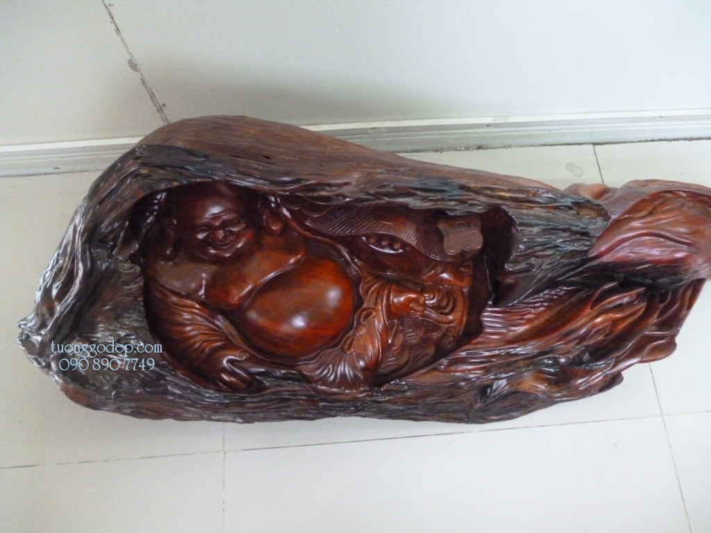 Phật Di Lặc gỗ lũa hương dài 98cm x dày 40cm x cao 39cm