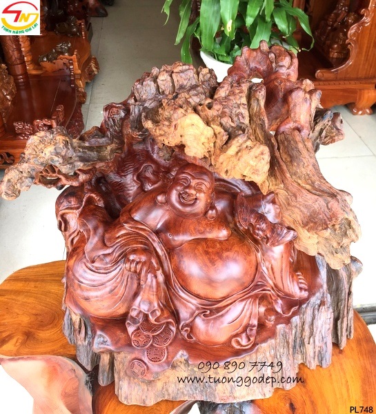 Ý nghĩa: Tượng Phật Di Lặc gỗ nu hương, tay cầm túi càn khôn và con dơi. Trong phong thủy con dơi là linh vật biểu tượng sự may mắn, an lành. Con dơi có âm Hán – Việt là phúc, đọc trùng âm với chữ phúc trong từ hạnh phúc, sung sướng