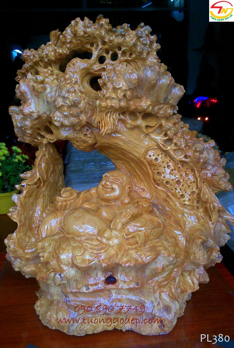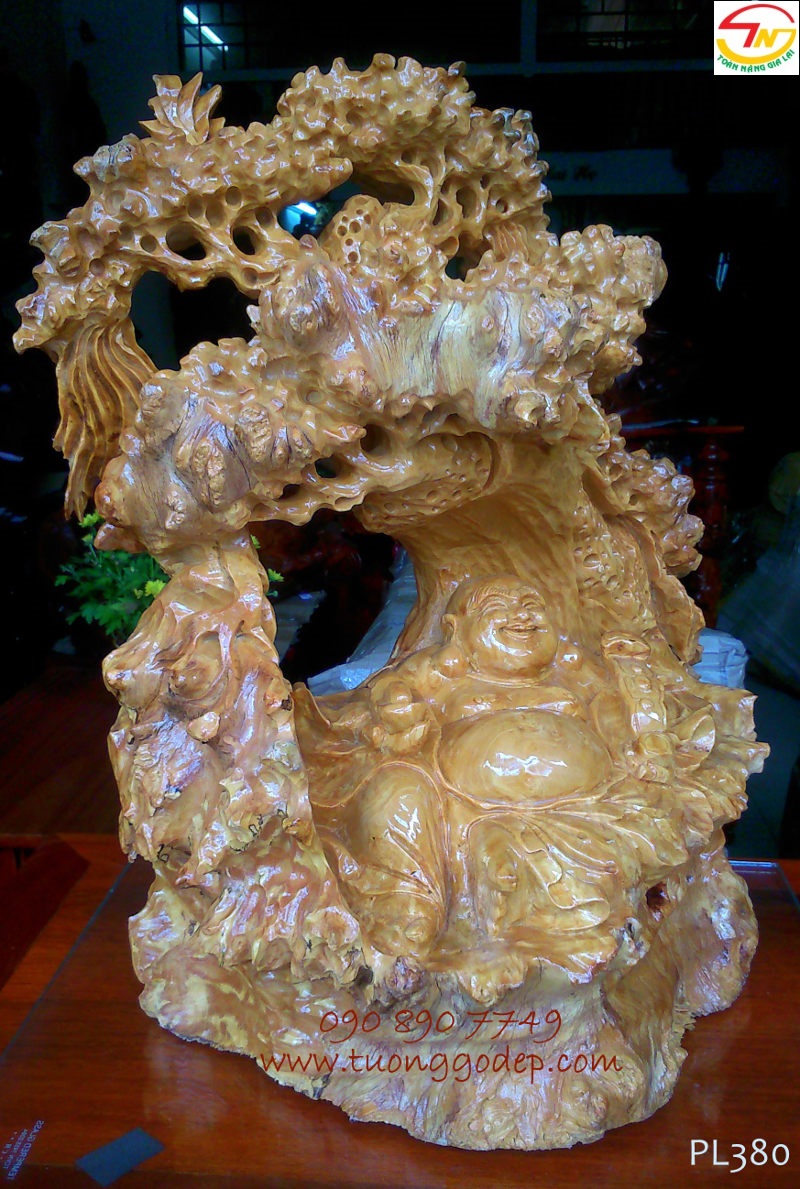 Tượng Phật Di Lặc ngồi gốc tùng gỗ nu nghiến - Cao 48cm x rộng 40cm