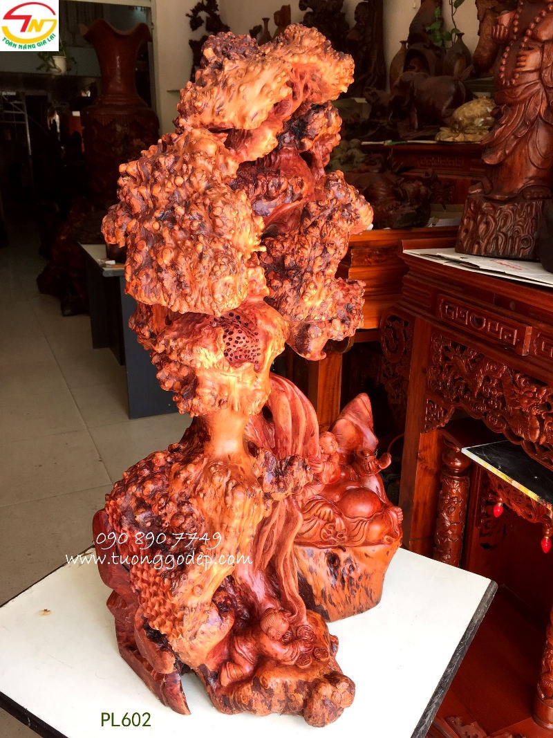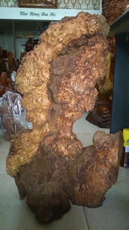 Gỗ nu trước khi làm. Tượng được tạo dáng tự nhiên