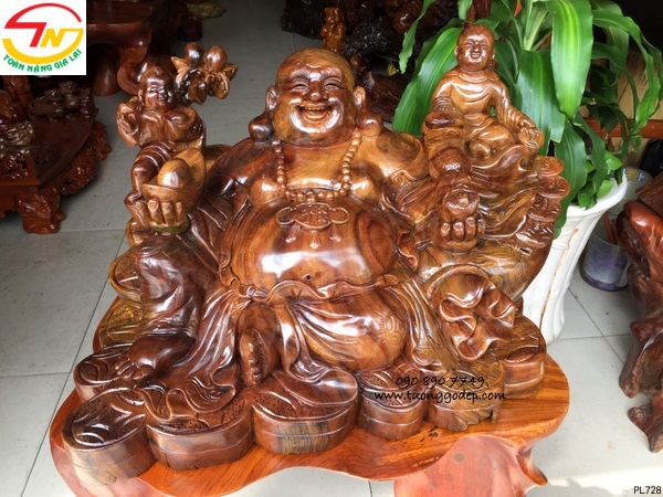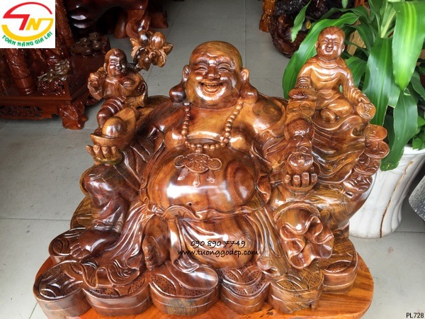 Ý nghĩa: Tượng Phật Di Lặc gỗ xá xị. Di Lặc tay bát vàng và gậy như ý
