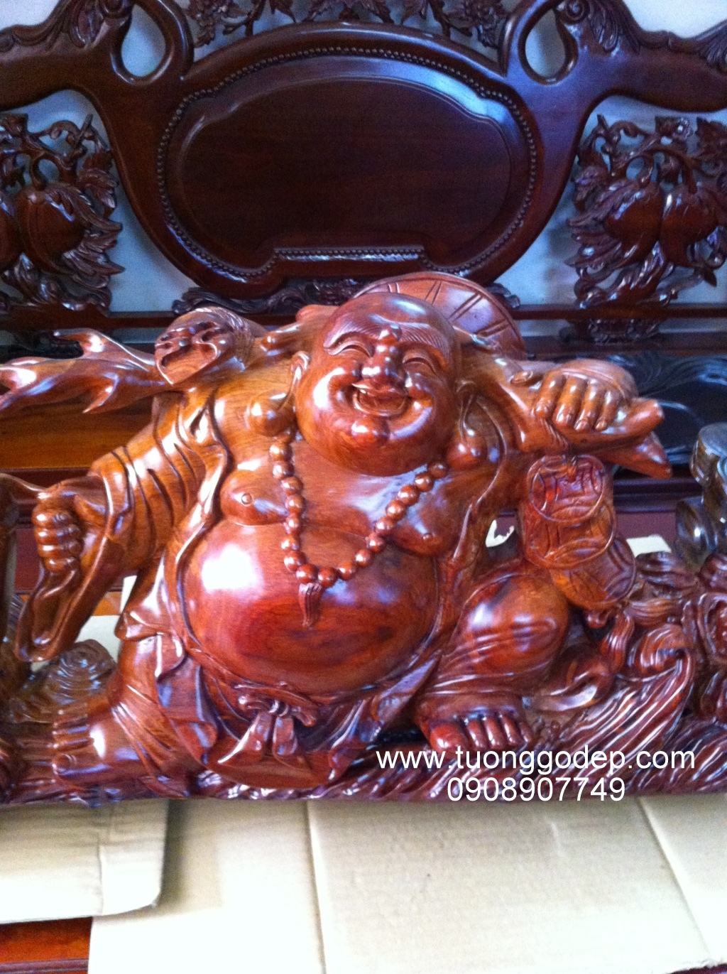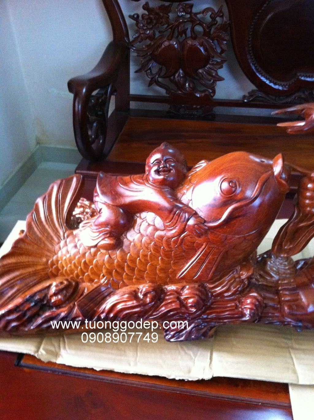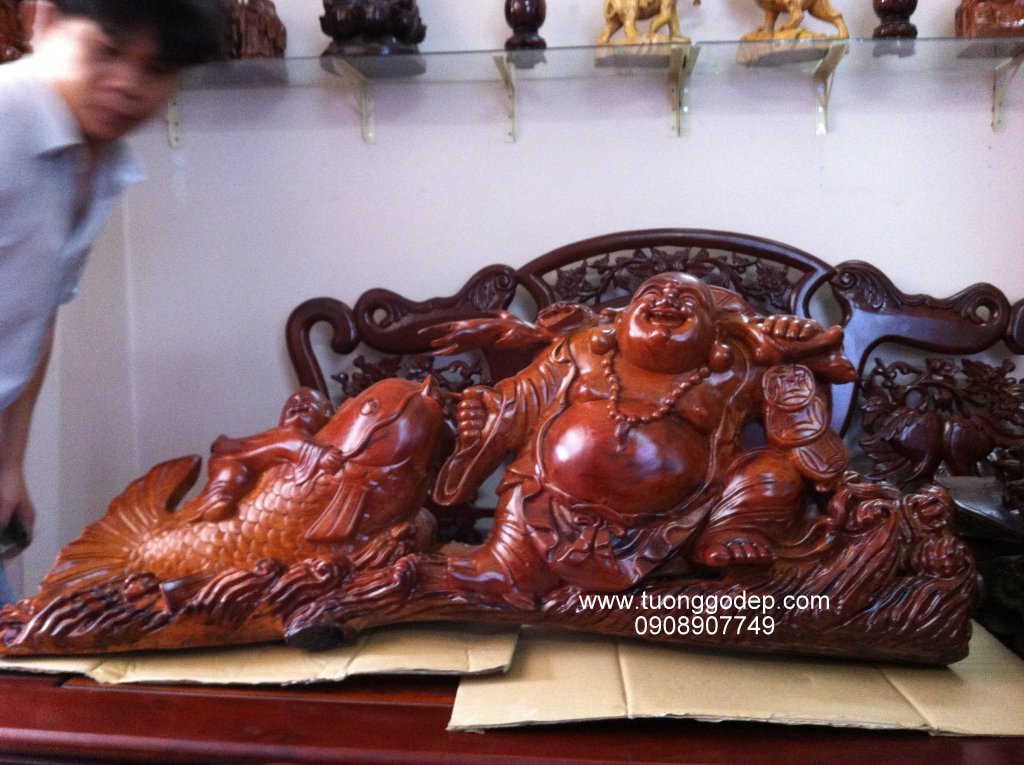 Tượng gỗ Phật Di Lặc kéo cá chép (Gỗ hương, dài 1.08m x 38cm) - Gỗ rất thơm