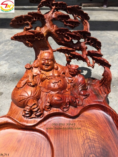 Phật Di Lặc ngồi dưới cây tùng, tay cầm như ý và bát vàng...