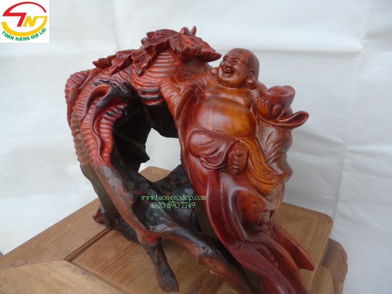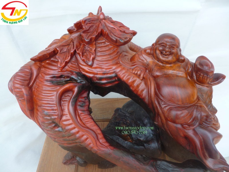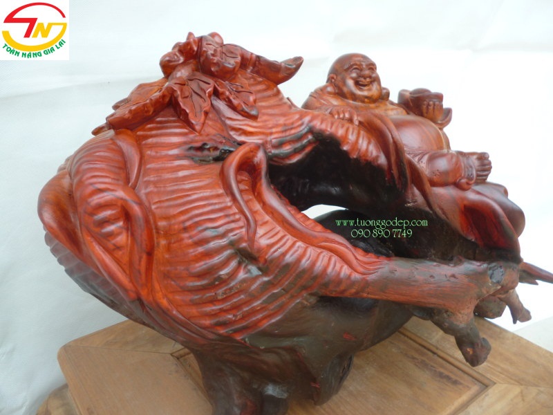 Phật Di Lặc Cũ Sâm, có đá, tác phẩm có một không hai (Gỗ hương, ngang 48cm x cao 35cm)