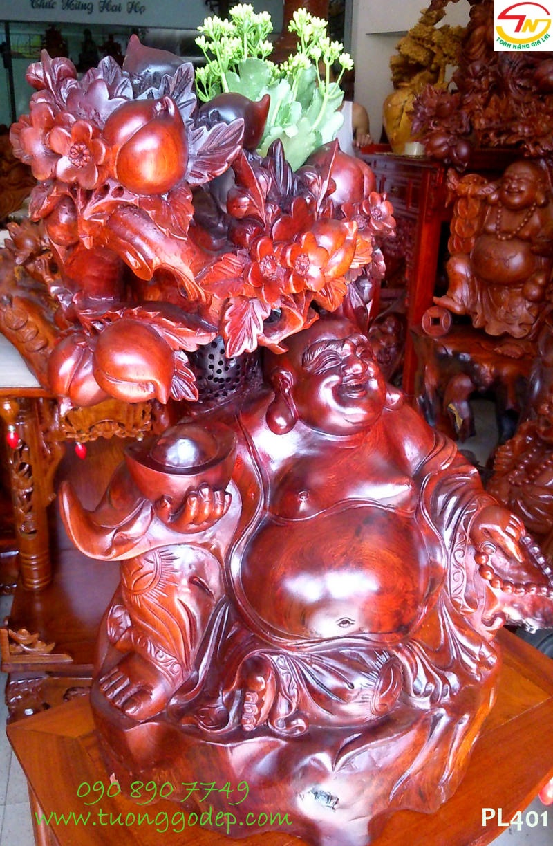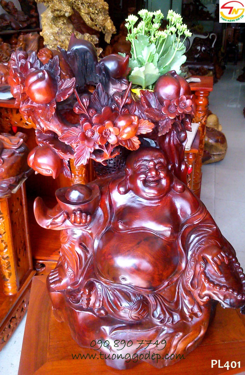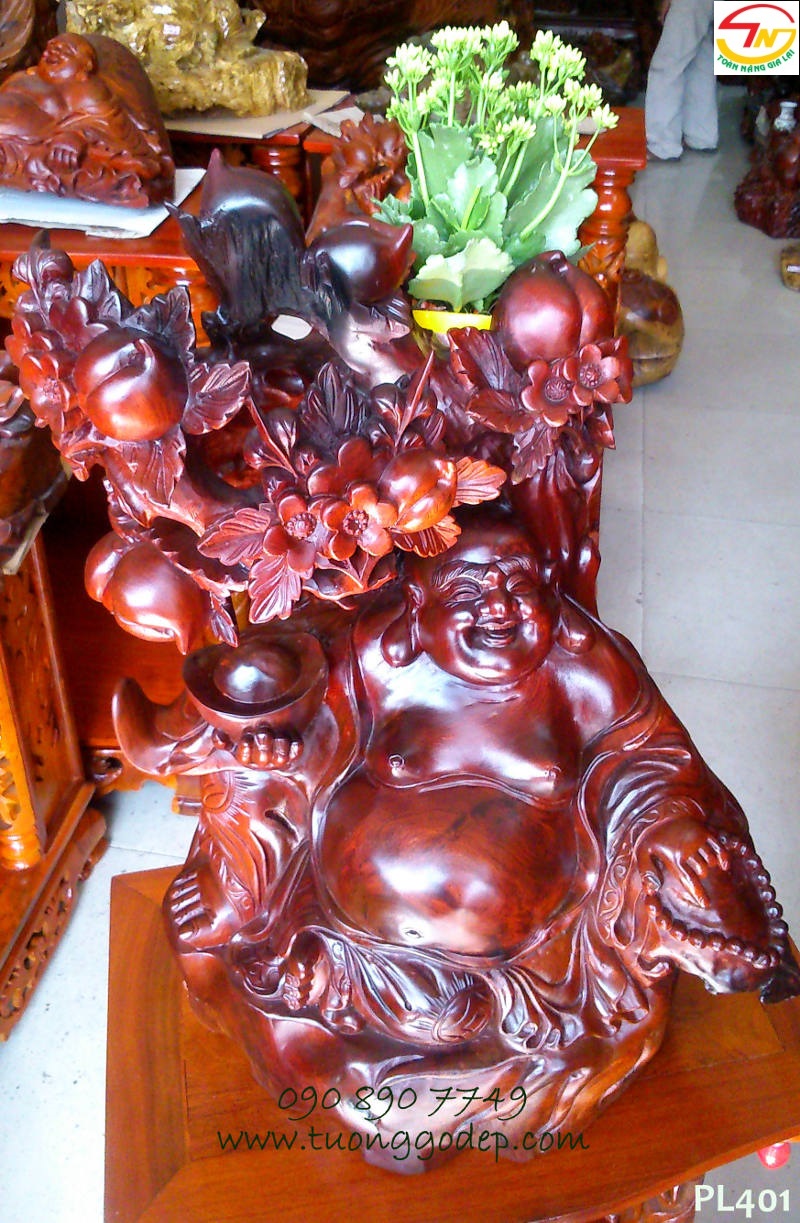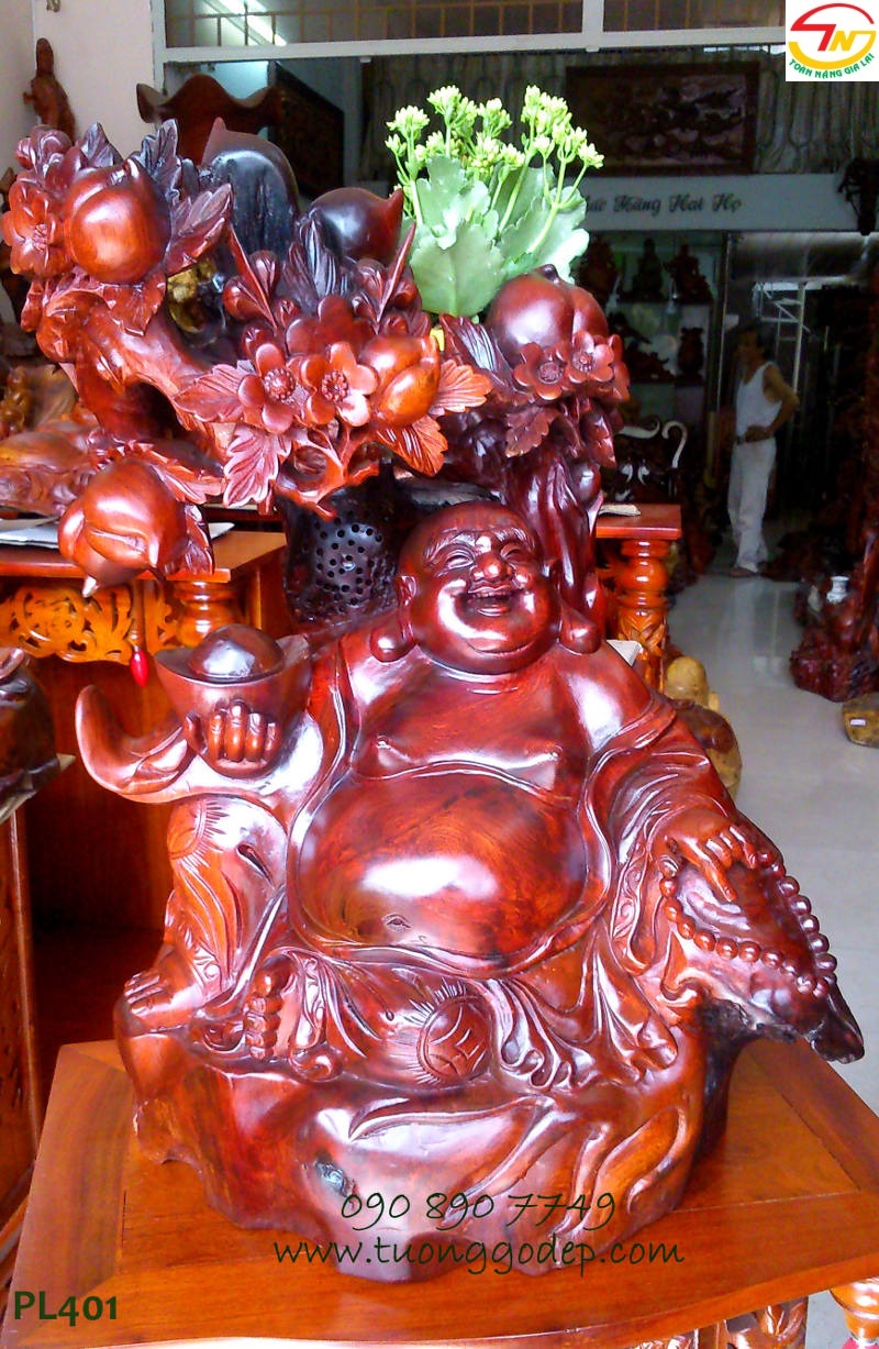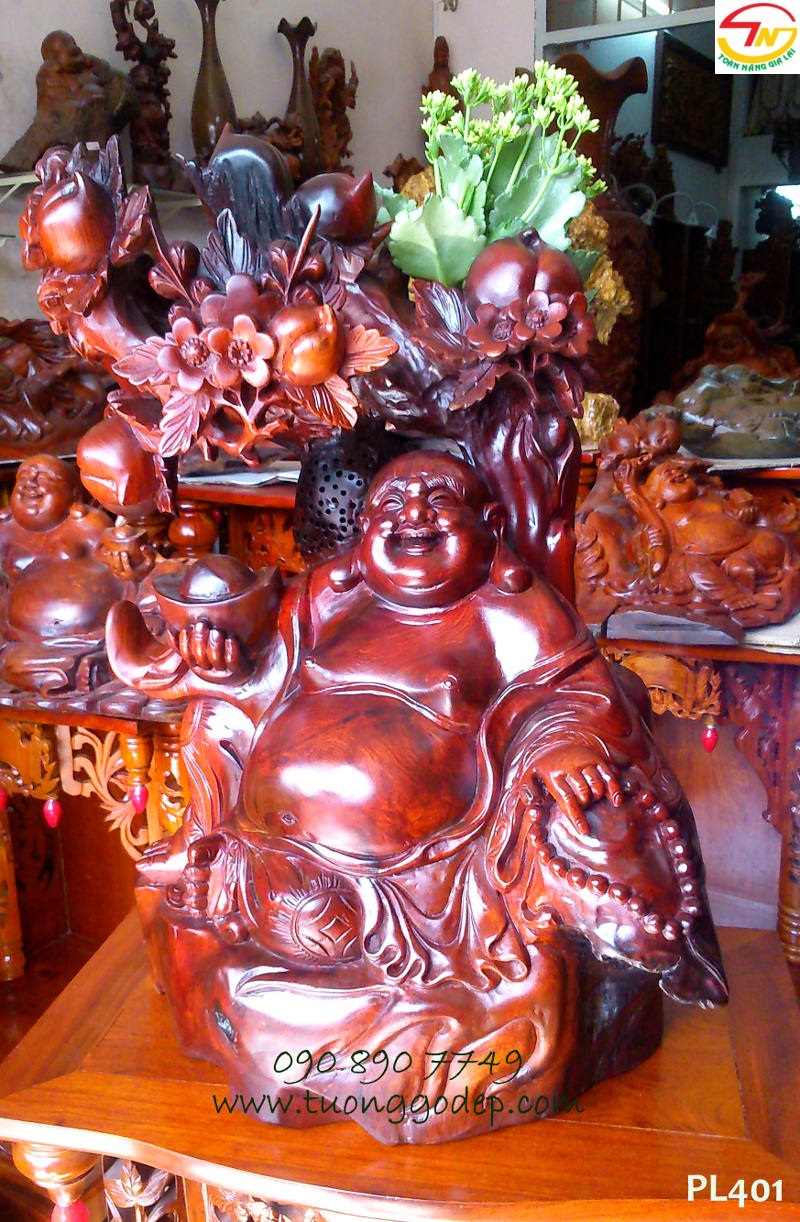 Phật Di Lặc ngồi gốc đào (Gỗ hương, cao 55cm x ngang 42cm)