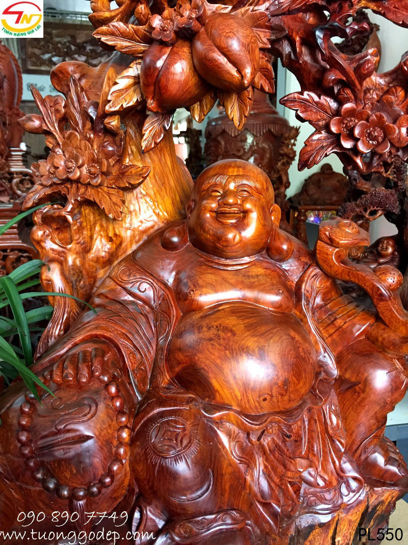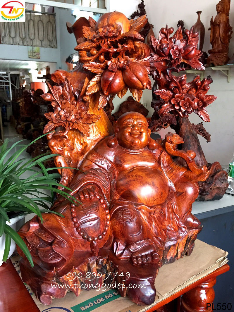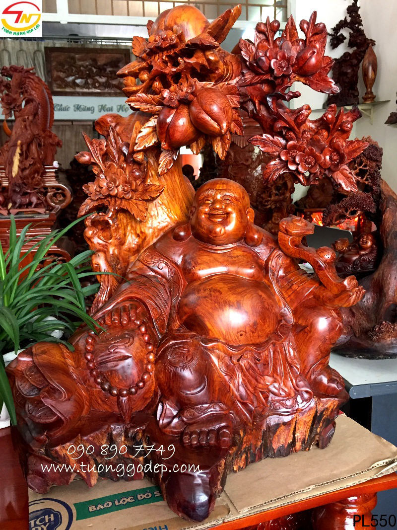 Tượng Phật Di Lặc ngồi gốc đào, gỗ hương (Cao 61cm x rộng 43cm)