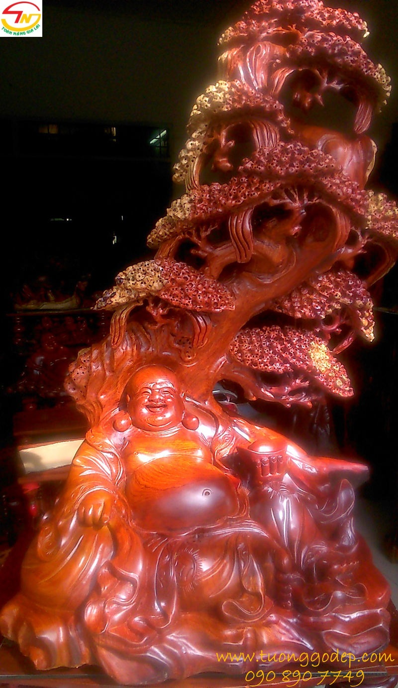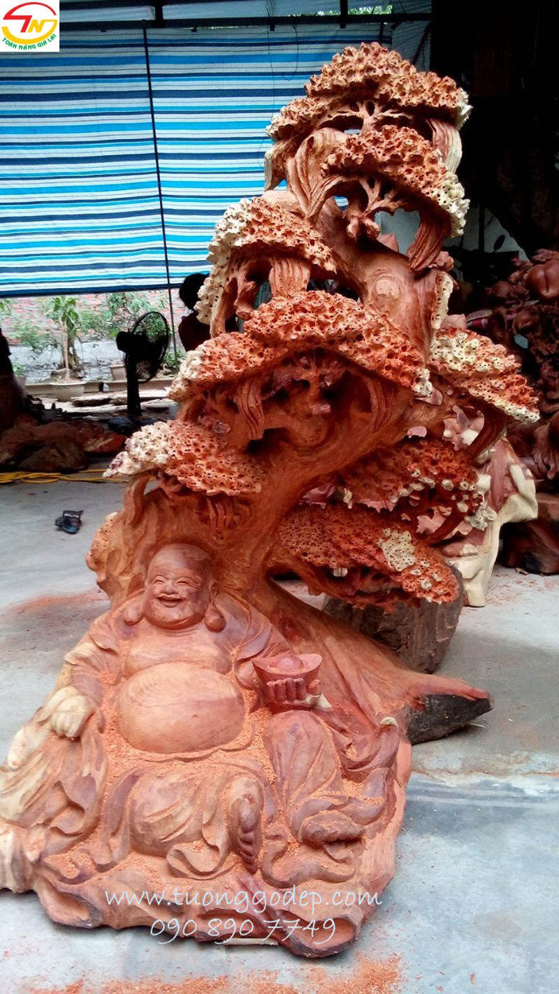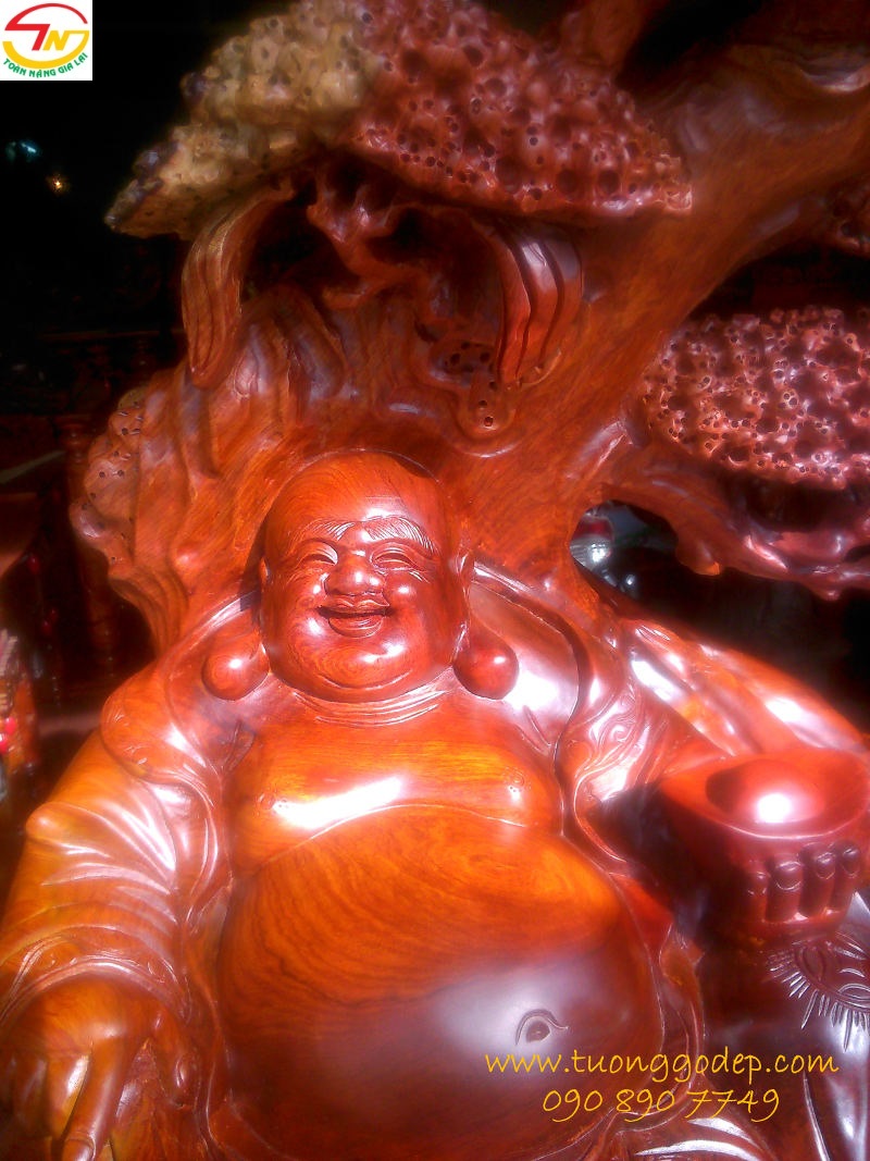 Tượng Phật Di Lặc bằng gỗ hương ngồi gốc tùng - (cao 86cm x rộng 60cm x sâu 48cm)