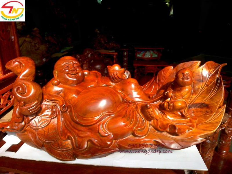 Tượng Phật Di Lặc ngồi lá đào (Gỗ hương - Dài 68cm x rộng 36cm x cao 30)
