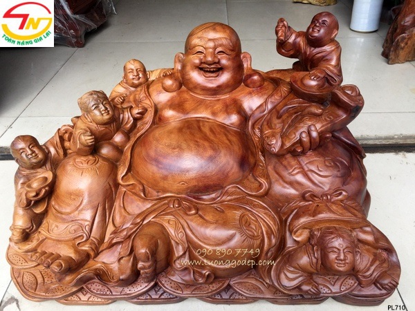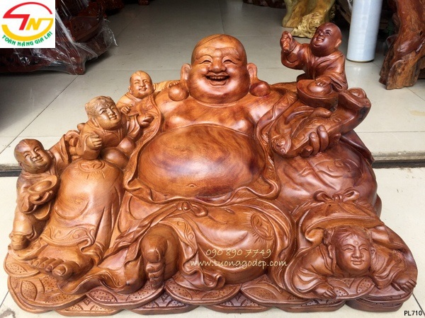 Phật Di Lặc ngũ phúc gỗ xá xị
