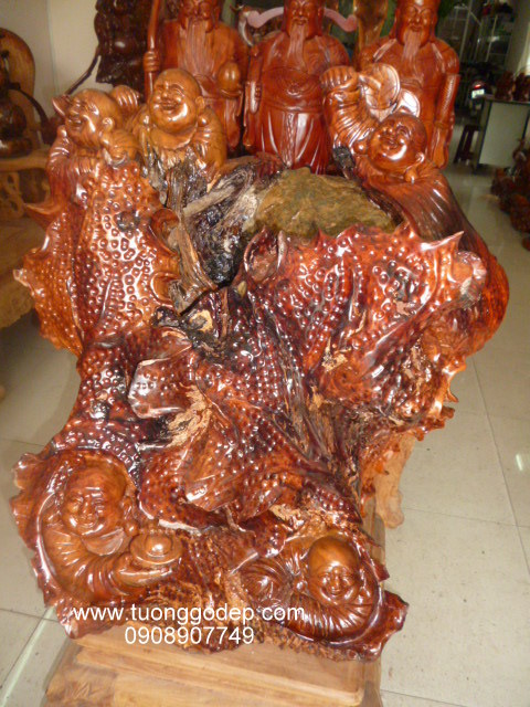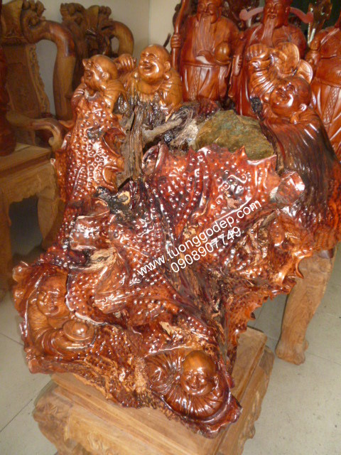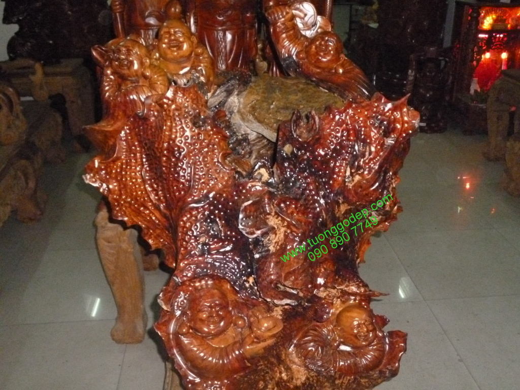 Tượng thế Phật Di Lặc Ngũ Phúc (Gốc gỗ hương ôm đá, cao 80cm x rộng 70cm)