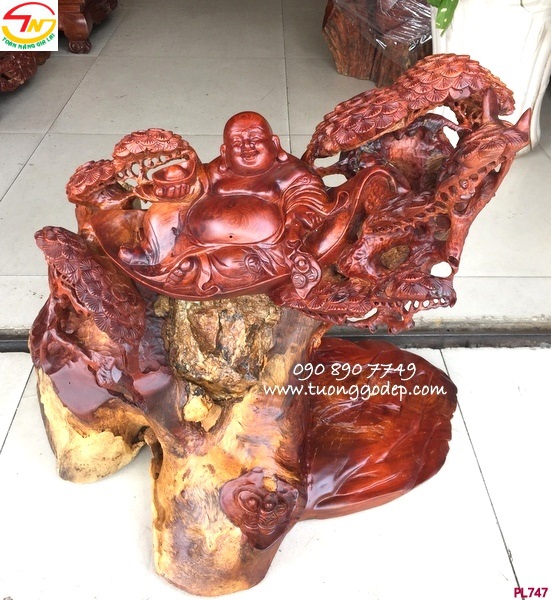 Ý nghĩa: Phật Di Lặc ngồi võng, tay cầm bát vàng và túi càn khôn kết hợp với cây tùng mang đến sự cát tường, vạn sự như ý cho gia chủ.., Kết hợp với gỗ hương ôm đá mang ý nghĩa trường tồn, vĩnh cữu...