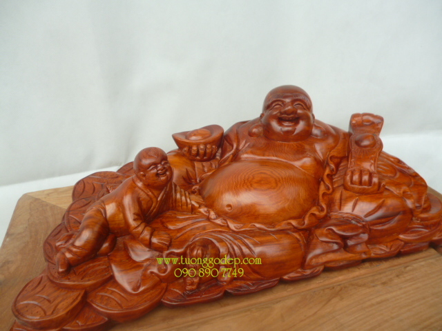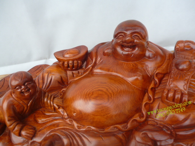 Tượng gỗ Phật Di Lặc (Gỗ hương- Dài 50cm, rộng 22cm, Cao 18cm)
