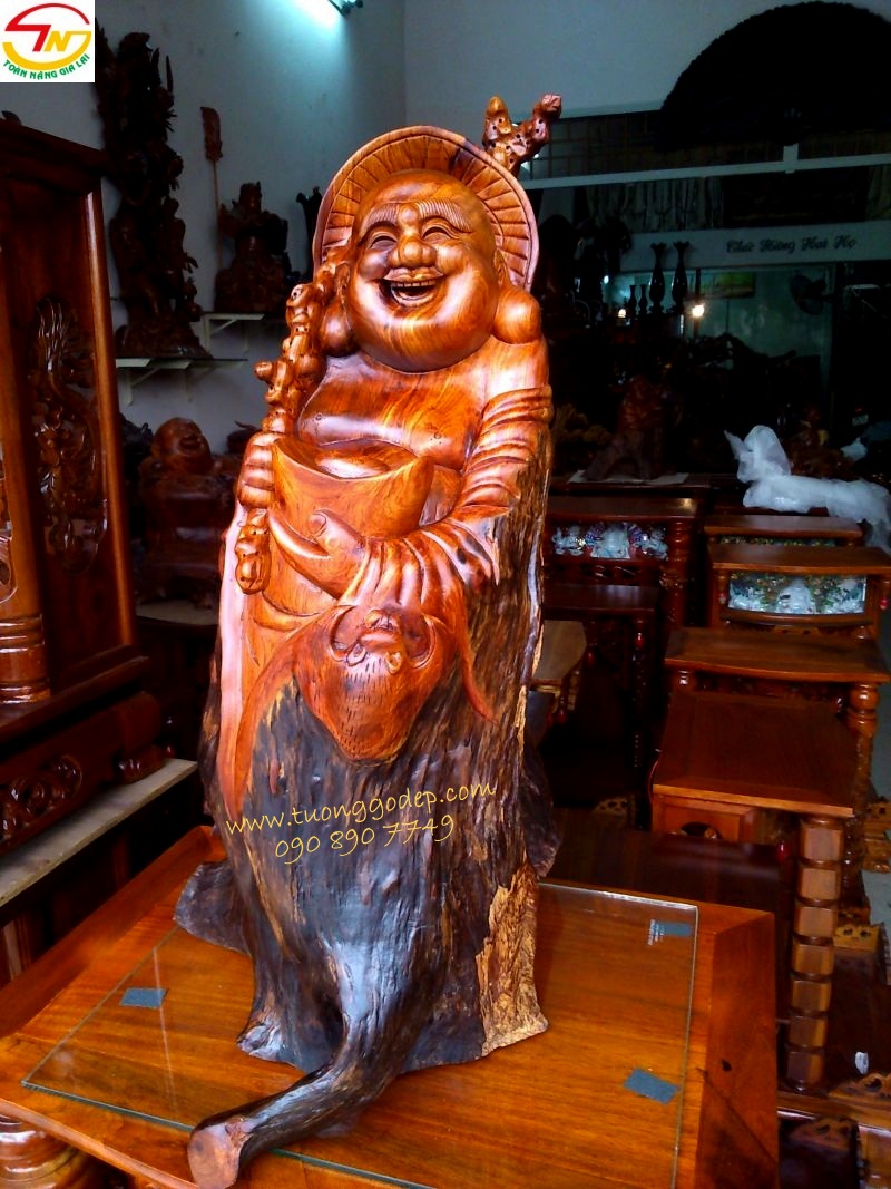 Tượng Phật Di Lặc mang bao tiền & dơi, (Gỗ hương, cao 68cm)