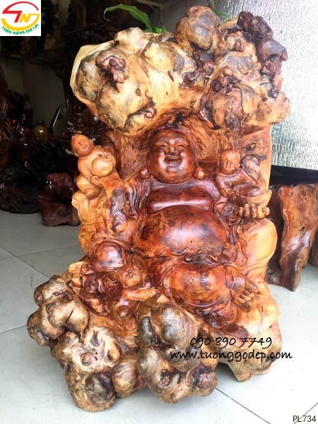 Phật Di Lặc được chế tác từ gỗ nu huyết long
