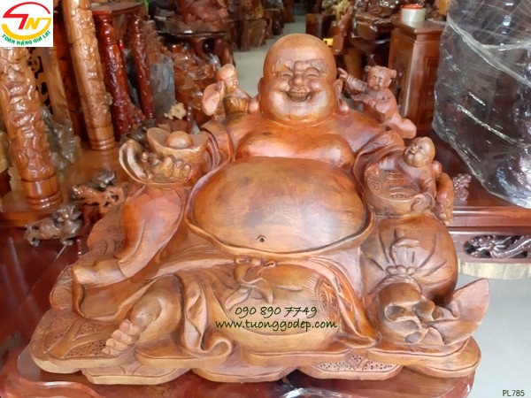 Ý nghĩa: Tượng Phật Di Lặc gỗ xá xị. Di Lặc tay cầm bát vàng mang ý nghĩa cầu tài lộc. Tượng Phật Di Lặc được tạc cùng tam phúc (Phúc thứ nhất Trường Thọ, phúc thứ hai Phú Quý, phúc thứ ba Khang Ninh)